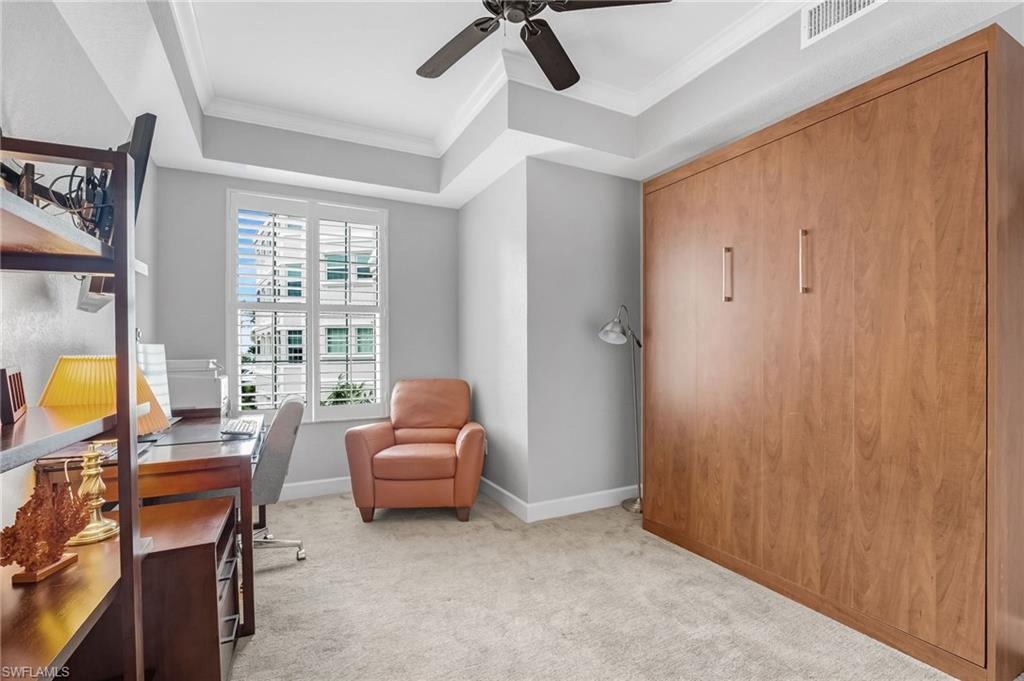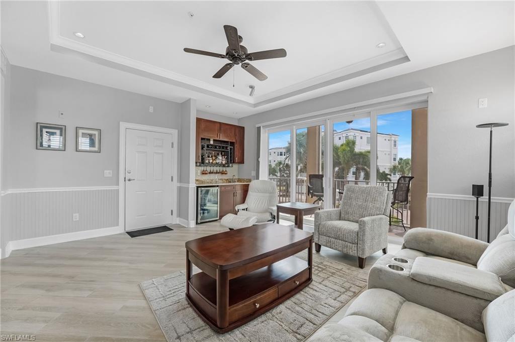 Located in the highly sought-after Harbour Landings at Gulf Harbour, this exceptional three-bedroom, two and a half bath residence offers breathtaking panoramic views of the 10th and 14th fairways and shimmering lakes beyond. Hurricane protection is provided for the majority of the condominium, offering peace of mind.The beautifully remodeled kitchen and baths elevate the homeu2019s sophisticated appeal. The chefu2019s kitchen features granite countertops, a designer backsplash with elegant listello detail, under-lit island, rich wood cabinetry, stainless steel appliances, and a new refrigerator and dishwasher. The open-concept design is filled with natural light and is perfectly suited for entertaining. A stylish wet bar with refrigerator and sink adds to the homeu2019s hosting appeal.Step onto the open-air lanai and enjoy tranquil marina views, while the oversized private lanai provides the perfect vantage point for watching golfers and native wildlife. The primary suite is a serene retreat with a cozy seating area and stunning golf course and lake views. The remodeled primary bath showcases a seamless glass walk-in shower, freestanding soaking tub, dual granite vanities, and custom walk-in closet.The second bedroom, currently utilized as an office, includes a Murphy bed for versatility. The third bedroom is generously sized and features a charming window benchu2014ideal for relaxing with a good book. The second full bath offers a walk-in shower and single vanity.Additional highlights include tile flooring throughout the main living areas, carpeting in the bedrooms, a private elevator, and the rare advantage of occupying the entire floor. The community offers a resort-style pool, with new roofs and refreshed landscaping recently completed.Private memberships are available for separate purchase, allowing access to the world-class amenities that Gulf Harbour Yacht & Country Club has to offer.