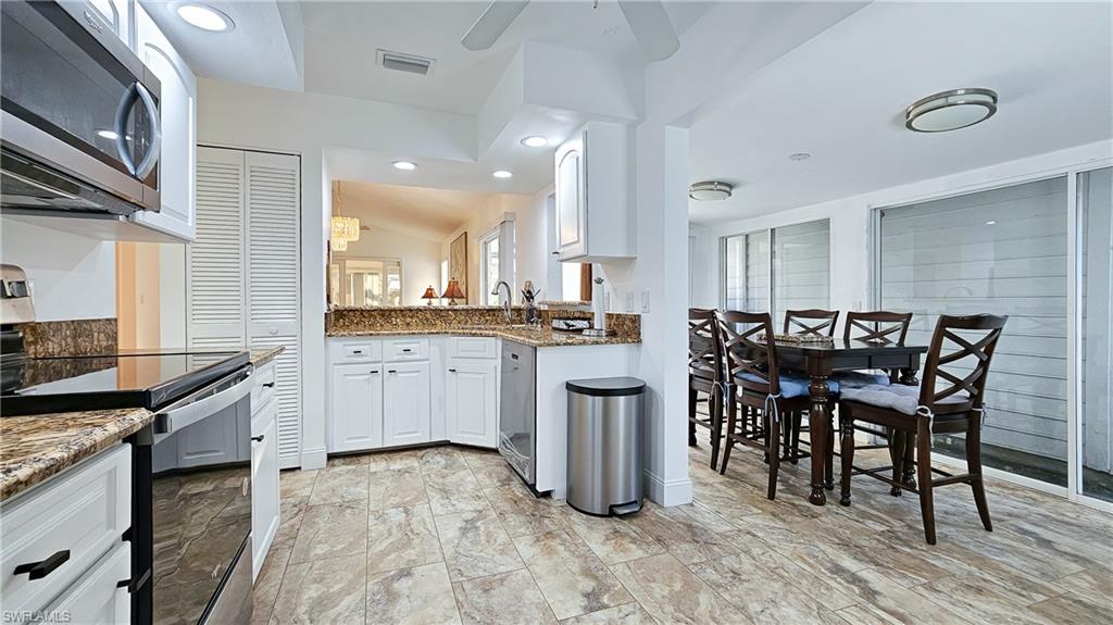 Great detached villa with 3 bedroom/2 bath + den, 2 attached car garage, available furnished for sale or for short or long term rental in the desirable Crooked Pond in Gulf Harbor Yacht & Country Club Community. This unit has a large living room, a den and an enclosed additional room by the kitchen, currently used as dining room, volume ceilings, new roof and paint in 2024, new appliances and new high quality floors throughout the house. The den and screened lanai have a lovely view of the lake across the street. Residents enjoy access to an array of amenities, including a community pool which is steps away, as well as optional membership to all the Gulf Harbor amenities including the clubhouse, championship golf courses, tennis courts, fitness center, community park and private beach. Come enjoy the unlimited sunsets and this beautiful house located in a great neighbourhood, close to wonderful Fort Myers Beach, Sanibel, Captiva islands and Bunche Beach Preserve, restaurants, SW Florida International airport and entertainment centers! This home can be available for long term at $2400 or short term lease at rate between $3800-4500 per month depending on the duration of the lease and seasons.