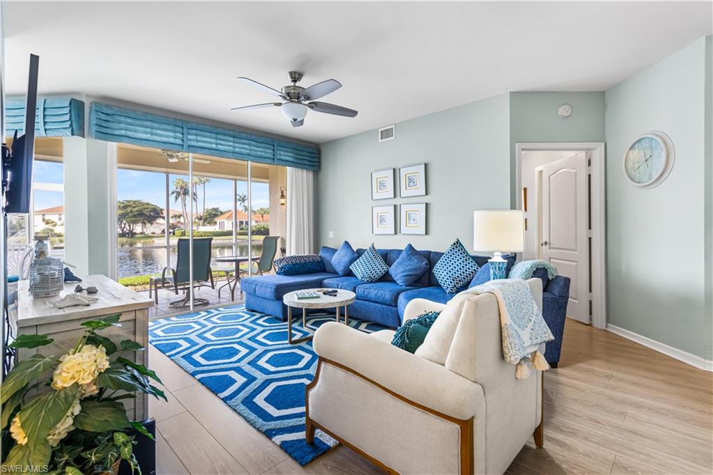 ML# 224097296 ALREADY BOOKED FOR JAN-MARCH 2026! AVAILABLE FOR APRIL 2026 FOR $5000 + 11.5% SALES TAX. $1500 SECURITY DEPOSIT & $150 EXIT CLEANING FEE. This 2 bedroom +den (which offers 2 twin beds),it is a 3 BEDROOM. A COASTAL PARADISE is just waiting for you !UTILITIES, INTERNET AND WATER, CABLE INCLUDED! Relax on your screened in lanai after a long day on the sugar sand beaches and take in the warm sunsets reflecting off of the serene lake and watch the wildlife each evening. You will never want to leave this place! Primary bedroom has a king bed and the ensuite bath has a separate soaking/zen tub and walk in shower. 2nd bedroom has a queen bed. 2nd full bath has tub/shower combo. Prepare your meals and dine overlooking the lake! WALKING DISTANCE TO THE FABULOUS COMMUNITY POOL/SPA! BBQ area by the pool!Laundry in residence.1 car garage.NO PETS, NO SMOKING, NO MEMBERSHIP AVAILABLE TO PRIVATE CLUB.