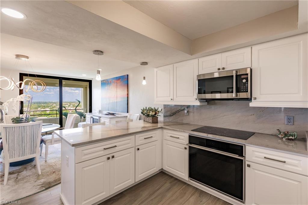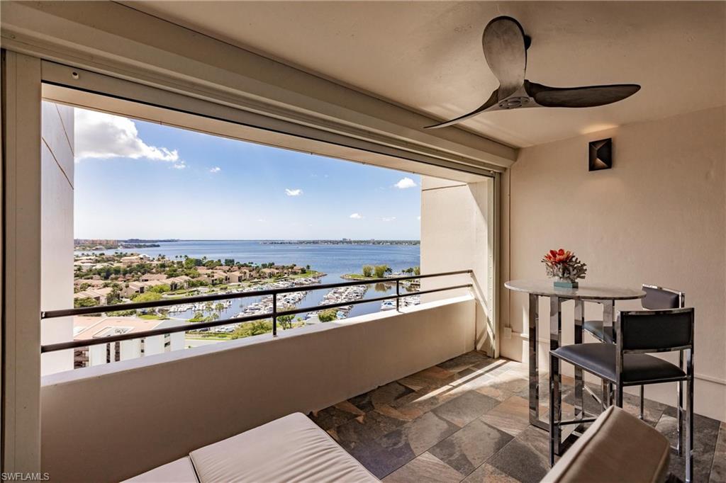 This SPECTACULAR 3-bedroom 15th floor corner u2018sky homeu2019 with incredible views has been upgraded to the fullest! Over 2,500 sqft of luxurious elegance, this coastal-themed property with designer details will captivate you! High-end features of plank tile flooring, a completely renovated kitchen with gorgeous quartz, custom cabinetry, upscale appliances and ample storage. Each of the 2-1/2 baths have been fully renovated w/amazing tile, glass and wood. The huge primary suite w/balcony on the southwest side of the home provides colorful views to Sanibel and the barrier islands. The expansive 60+ ft long main balcony provides outdoor enjoyment and entertainment space with river views as far as downtown Fort Myers. NEW hurricane doors and windows, plus Storm Smart screen protection and new dehumidification unit assures peace of mind. Membership has its privileges, and you get it ALL with this property. Located in The Landings Yacht Golf & Tennis Club, this gated & bundled community has u201cBest in Floridau201d tennis and pickleball associations with free access to 16 clay courts and 8 pickleball courts with many different levels and divisions and play. Golf on 18 holes with leagues and open play. Well-equipped sports Pro shops. Deep water Gulf access marina with INCLUDED boat slip for up to a 65u2019 vessel (subject to wait-list), with a Shipu2019s store and fuel dock. Top it off with lots of social activities and 2 great dining venues. Owners in Ariel, a luxury high rise atrium-style condominium, enjoy fabulous amenities of 4 guest suites, fitness center with locker rooms and saunas, resort swimming pool and BBQ plaza, gaming and card-playing rooms, ball room/function hall and 3 tennis courts. In addition, under building parking, storage lockers and on-site management complete this amazing package. A great opportunity awaits u2013 come embrace this tropical, fun and luxurious lifestyle!