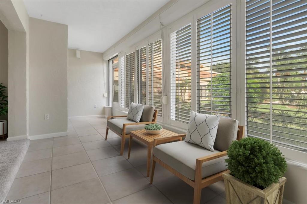 Owner is motivated to get property sold and has made another significant price adjustment. First-Floor 3/2 Condo with Direct Pool Access & Garage! Discover peaceful, resort-style living in this beautifully refreshed first-floor condo, offering 3 spacious bedrooms, 2 baths, and the rare convenience of a single-car garage. Step out from your lanai directly to the sparkling community poolu2014perfect for morning swims or sunrise relaxation. Freshly painted with plush new carpeting, this home combines comfort and style. The kitchen boasts granite countertops. Plantations shutters really sets off this property off and offer lots of storage and walk in closets custom shelving. . Situated in a tranquil cul-de-sac, yet just a short stroll from the clubhouse and tennis courts, this gem offers privacy without sacrificing accessibility. Whether you're seeking a seasonal escape or your forever home, this one checks all the boxes. Views of lush tropical foliage. Hurricane shutters. Owners have enjoyed glassed-in oversized Florida room for year round enjoyment and more A/C living space, but yet can be converted back to a screened lanai if that is more your style. Community offers so many options for active Florida lifestyle. 13 har Tru tennis cts, 8 pickle ball cts, bocce, fitness center with classes, and UNLIMITED golf, 192 wet slip marina and additional dock-age. Two restaurants.