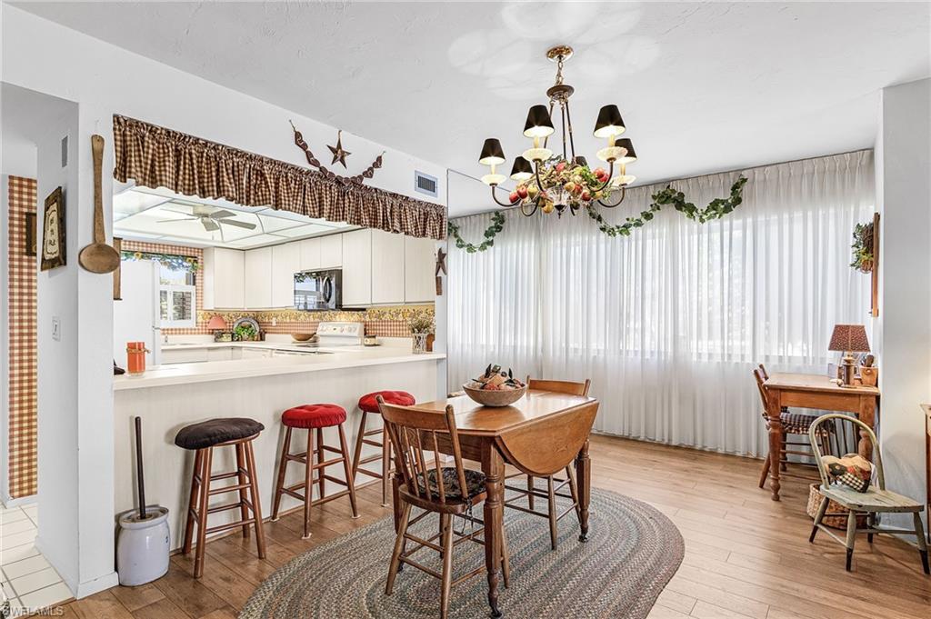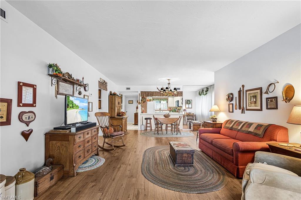 Enjoy great tropical, serene lake and golf views from this east-facing, light-filled 2-bedroom corner unit featuring an extra window in the dining room and gorgeous wood flooring in the main areas. The lanai has an enclosure that extends the living space. The spacious primary bedroom includes a walk-in closet and ensuite bath with walk-in shower and extra vanity/dressing area. A few steps from your door you have a covered carport space and the heated community pool. Access this 2nd floor unit by common elevator or walk up one easy flight. This highly motivated seller is taking most of the antique furniture and will negotiate on other pieces. Make this one your new escape to paradise with the lifestyle you deserve at The Landings Yacht Golf & Tennis Club! Excellent location off historic palm-tree lined McGregor Blvd, and minutes to Ft Myers Beach, Sanibel, great shopping, theater, FLSW Univ, RSW airport, medical, downtown river district and two spring training venues. Come live the dream!