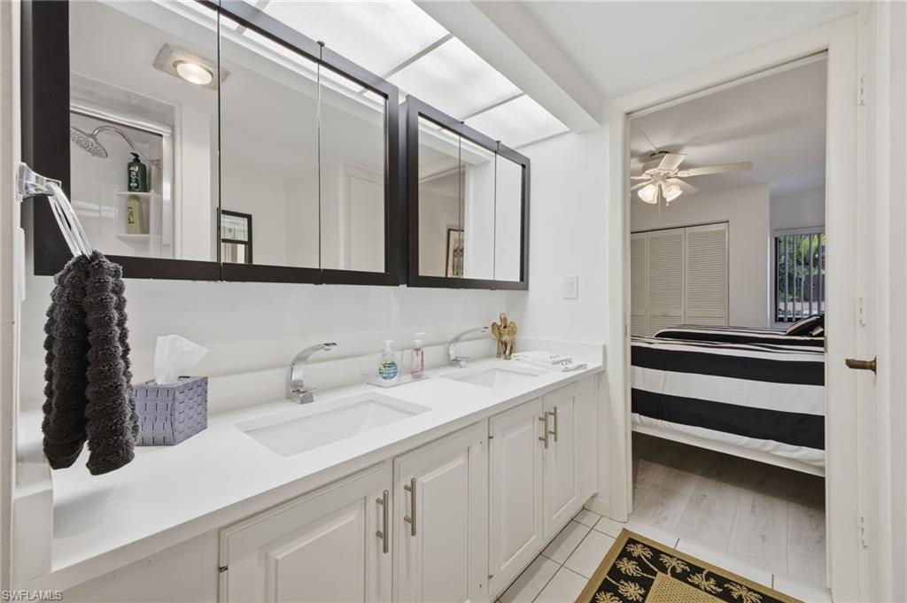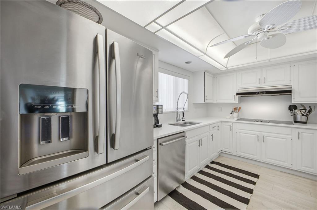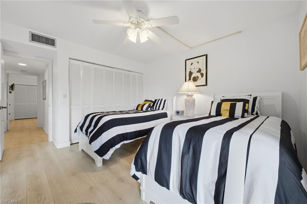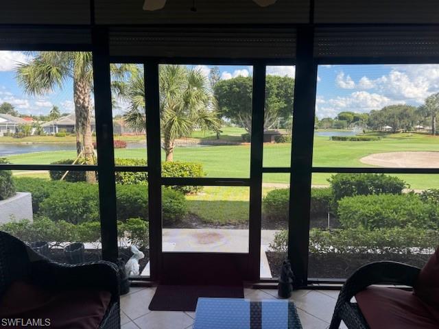 This spacious condo offers the convenience of a first-floor walk-out, placing you directly in the lush and tropical surroundings that define the Landings community. The natural beauty and manicured landscaping provide a tranquil atmosphere right outside your door. Terrific LOCATION, Location, location - just steps from the clubhouse, golf course and tennis courts, from your private, oversized lanai.Designed to accommodate various lifestyles, this flexible and open split-bedroom floor plan can function as a 3-bedroom, 2-bath condo or be configured as a 2-bedroom, 2-bath unit with an additional den or office space. The open layout enhances the sense of spaciousness and comfort, making it ideal for relaxation or entertaining guests. White wood cabinets, white quartz counters and stainless appliances are featured, with light wood laminate and tile flooring throughout. This well-equipped unit is offered turnkey.Located in highly sought-after Flagship Village, this rarely available style unit benefits from a prime location within the community. The eastern exposure ensures that the patio has brilliant sunlight in the mornings and shady, coolness in the afternoons, creating a pleasant setting for outdoor enjoyment with lush golf course and lake views at any time of day.Additional convenience is provided by an over-sized, under-building parking spot with lots of private storage, offering protection for your vehicle and toys, and covered access to your home.