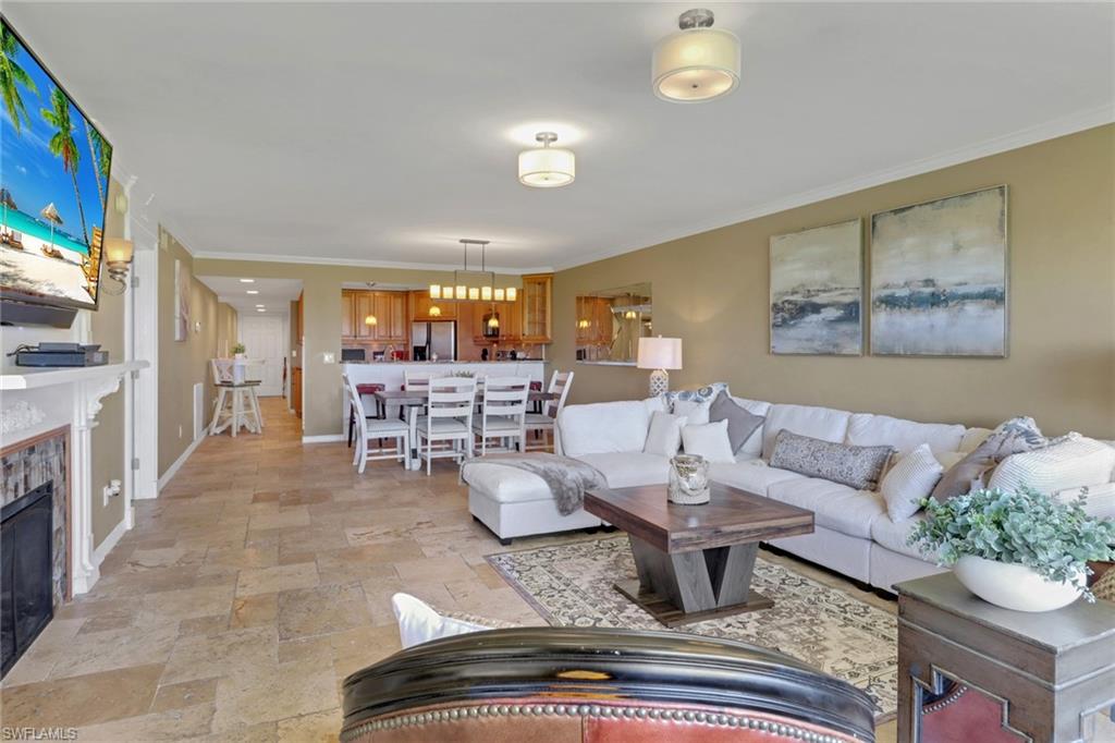 Coastal Charm Meets Everyday Luxury u2014 First-Floor Beauty Priced to Move!Why settle for ordinary when you can have extraordinary? This beautifully upgraded 3-bedroom, 2-bath first-floor condo offers the perfect blend of style, comfort, and convenienceu2014all tucked into a serene waterfront community.Inside, youu2019ll find rich travertine tile throughout, accented by crown moldings and 5` baseboards that add a touch of timeless sophistication. The kitchen is a true standout, featuring solid wood cabinetry, upscale stainless steel appliances, granite counters and a quality washer and dryer that make daily living a breeze. Both bathrooms have been renovated. This split layout give you plenty of privacy from visiting guests. On those cooler nights you will enjoy the coziness of the charming fireplace. Enjoy the peace of mind that comes with hurricane shutters already in place and thereu2019s plenty of extra storage plus a covered carport for added convenience. Step outside and youu2019re just moments from the marinau2014perfect for boat loversu2014and did we mention the sunsets? Theyu2019re nothing short of jaw-dropping!! They NEVER get old. Or head to the heated pool if lounging in the sun is more your style where you also have the amazing sunrises to enjoy just steps from your front door. This home is priced below market value to sell quickly in todayu2019s shifting market. Whether you're looking for a full-time residence or a seasonal escape, this one checks all the boxes.Come see it for yourselfu2014because once you do, you wonu2019t want to leave.