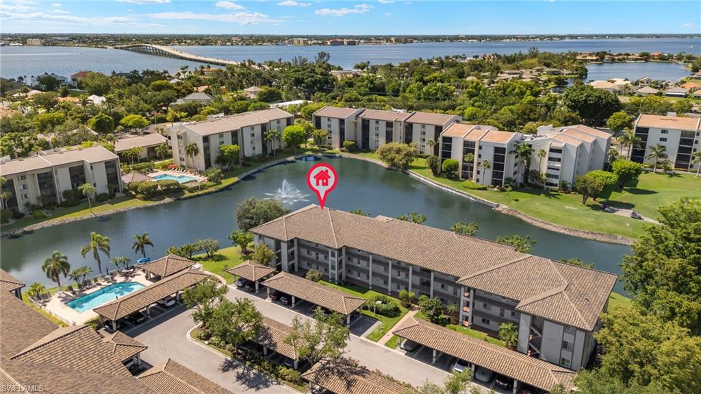 LOCATION, LOCATION, LOCATION! This FIRST-FLOOR,3-BEDROOM END UNIT is ideally situated just steps from the community pool and offers peaceful LAKE AND FOUNTAIN VIEWS from the spacious enclosed lanai. The home also includes the closest assigned parking space for added convenience. Recently removed from the market to add NEW CARPETING and fresh interior paint, this residence now shows bright, clean, and move-in ready. Additional features include a newer roof and fresh exterior paint, providing peace of mind for the next owner. Located within The Landings Yacht, Golf & Tennis Club, a guard-gated, bundled community offering a FULL SERVICE MARINA with boat slip included (based on availability), along with unlimited golf, tennis, pickleball, and bocce ball. Residents also enjoy two on-site restaurants, a fitness center, and an active social calendar. An excellent opportunity to enjoy convenient first-floor living in one of Fort Myersu2019 most desirable waterfront communities.