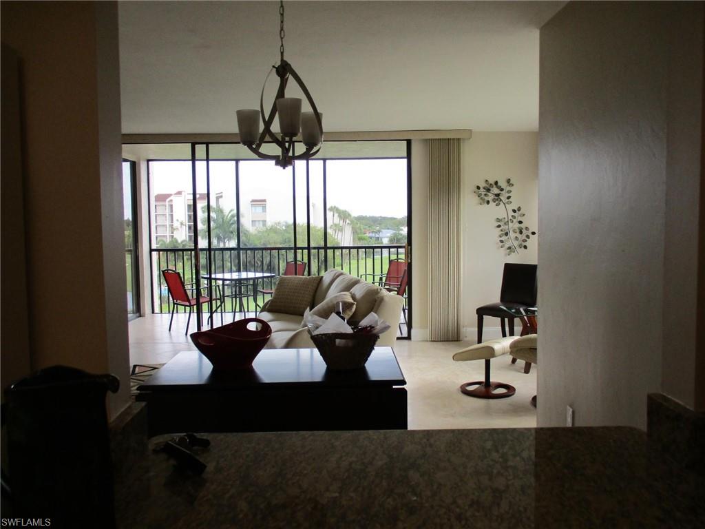 This King sized 1 bedroom 1 bath unit has a spectacular 180 degree view of the golf course and lake. It is open and airy with all the plush furnishings in the living room, elegant du00e9cor through out. The kitchen is updated and equipped with all the necessary essentials of daily living. The bathroom is set with perfect tall toilet, walk in shower and tile floors, with natural stone countertops. Floor-to-ceiling plexiglass sliders on the Lanai for extended airconditioned space or to open up for a nice evening breeze compete with a meal or just relax and watch the sunset. This condo is the perfect accommodation for a winter getaway!This well sought out community is close to beaches and offers the amazing lifestyle! Waterfront barbeque and picnic area on the river, unlimited golf, tennis, pickle ball, fitness center, bocce, walking and biking trails await your enjoyment.