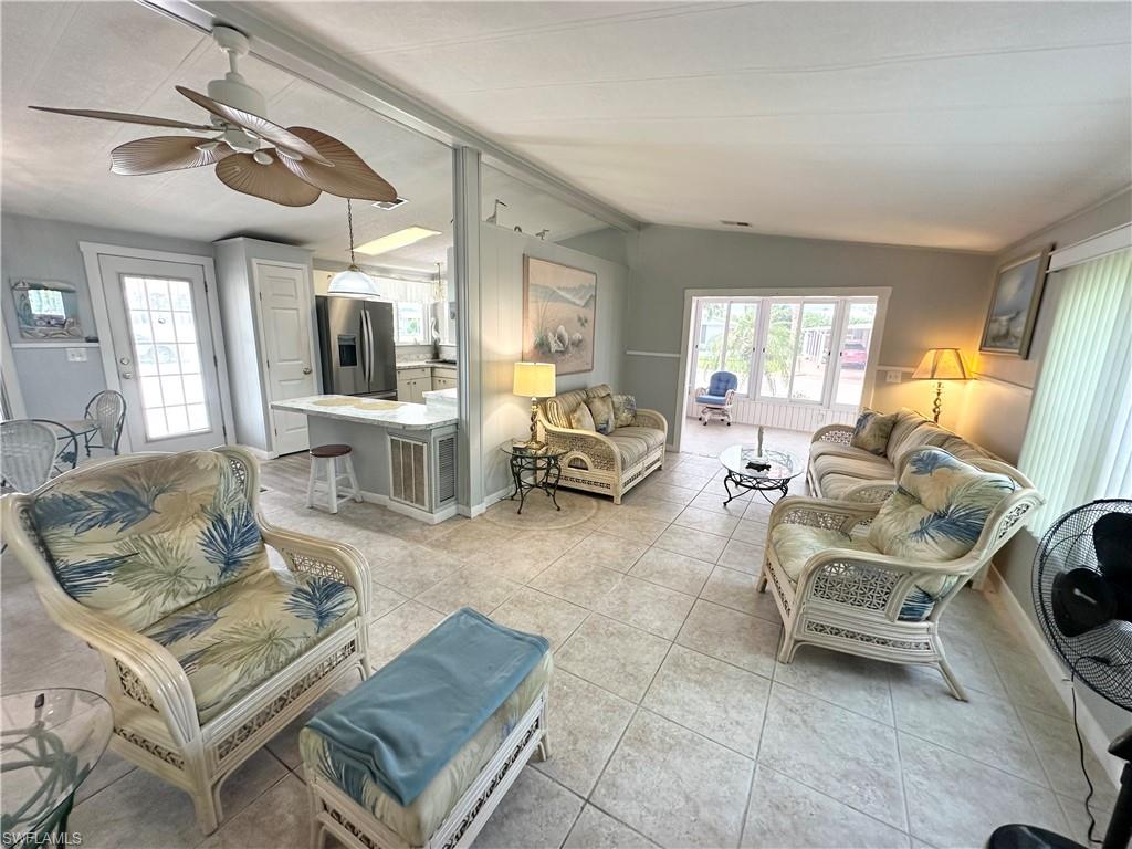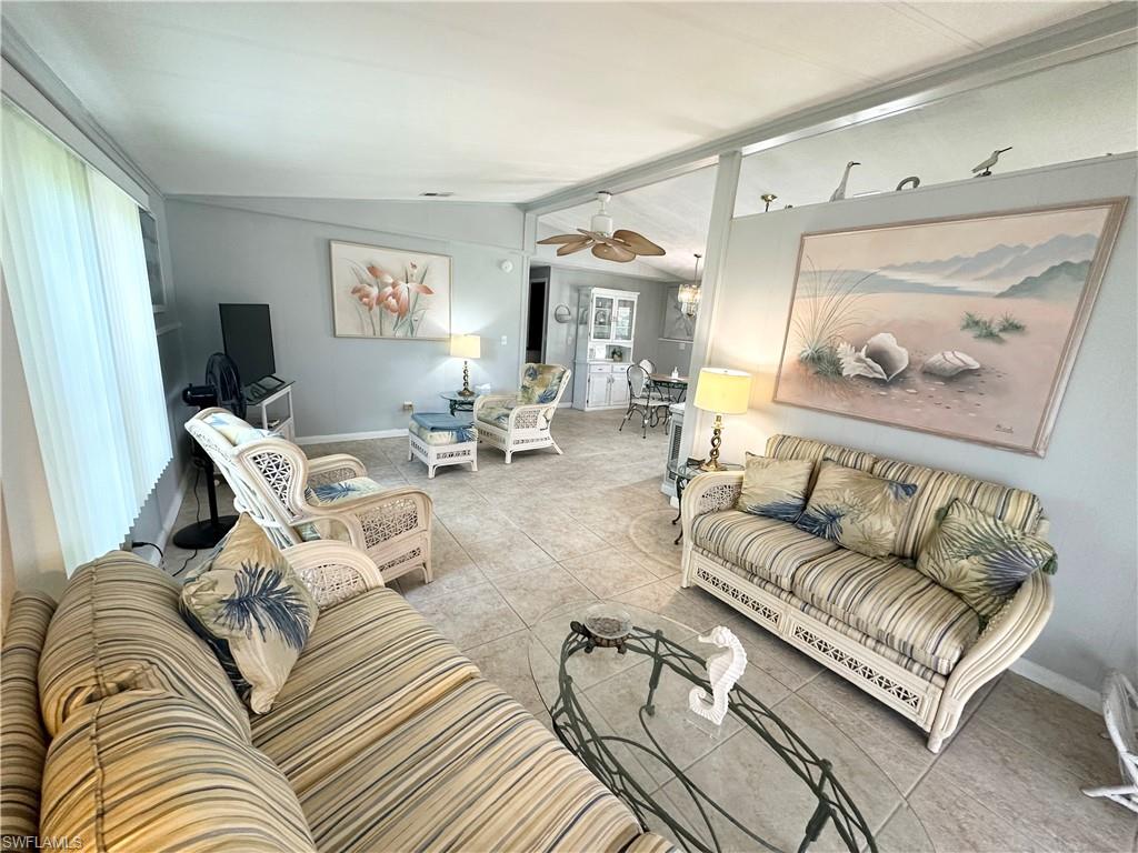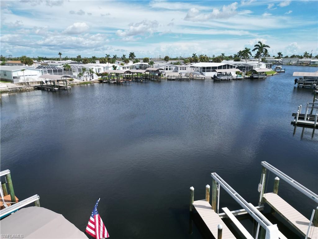 This charming two bedroom two bath home conveniently located on a corner lot and on a big water view of a lovely lagoon is for sale at an attractive price. There is a combination of tile laminate flooring throughout with a very comfortable floorplan. This residence sits across the street from a large grassy area, so with a water view to the rear and greenery to front, makes the setting of this home very pleasant. You will appreciate the one car garage for your car, motorcycle, golf cart or other toys. During a recent remodel, higher-end appliances were installed in the kitchen. Make an appointment to see this lovely home today. Bayside Estates is the best kept secret of Fort Myers Beach. This incredibly active and friendly 55+ community is the crown jewel on the gulf coast. Bayside estates is only 2.5 miles to the beach and is accessible by either car or boat--right from either your driveway or private boat dock. A very popular activity is to ride your electric bicycles to the beach for the day and visit the world-famous Jimmy Buffettu2019s Margaritaville. Just don't step on a pop-top!! Nearly all the major retail vendors are within a very short driving distance for ultimate convenience. For those who donu2019t know a lot about Bayside Estates, it is a very fun place to call home---some would even say itu2019s a mature personu2019s playground. Whether you want to play pickleball, tennis or bocce ball, hang out at the community pool, skinny dip in your own pool, or simply cruise the hood in your swanky golf cart, there is always something going on around here. People are friendly and you will be warmly welcomed.
