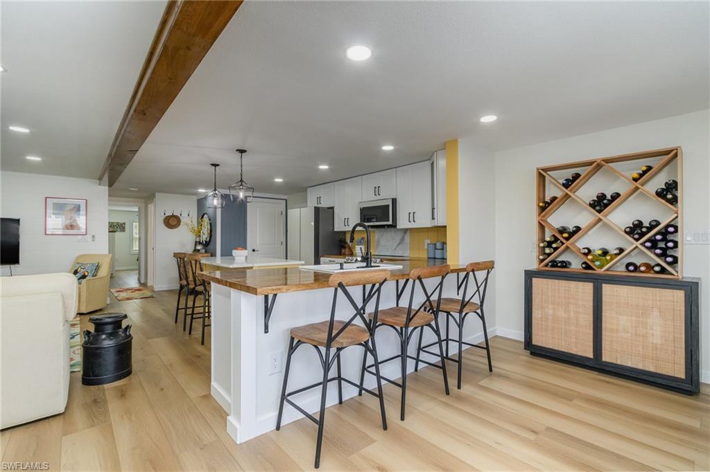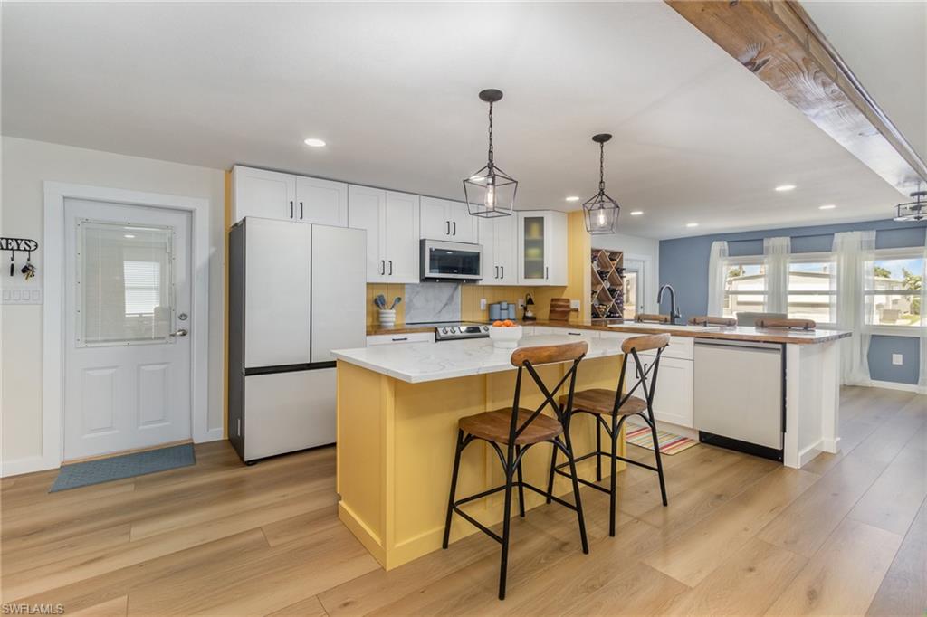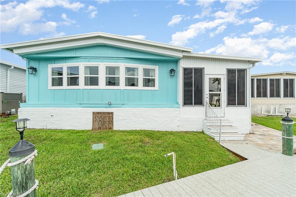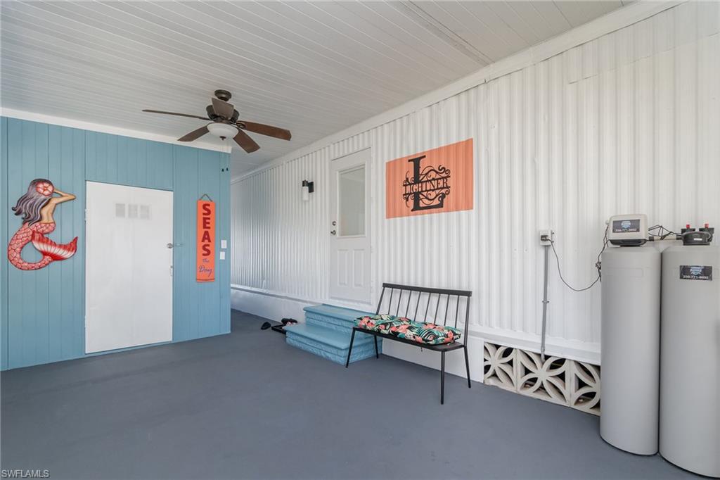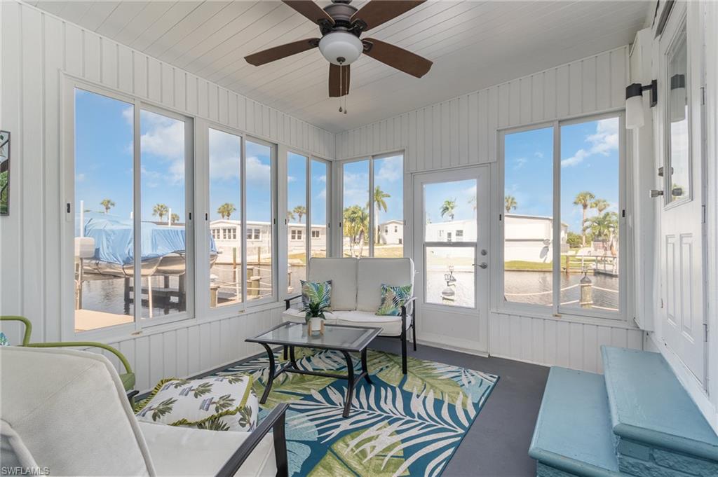Impeccably Renovated | Prime Location | Seller Financing AvailableExperience the very best of coastal living in this fully updated home in Bayside Estates, a premier 55+ Gulf access community located just 2.5 miles from Fort Myers Beach. Offering low HOA fees that cover water, garbage, internet, and yard maintenance, Bayside provides exceptional value along with a vibrant, active lifestyle.Every inch of this home has been meticulously renovated with high-end finishes that truly set it apart. Inside, youu2019ll find gorgeous 4x8 Advantech wood plank flooring, stylish shiplap accent walls, and designer light fixtures throughout. The open-concept layout seamlessly connects the living, dining, and kitchen areas, creating a bright and inviting atmosphere for entertaining or quiet nights at home.The spacious owneru2019s suite serves as a private retreat with a dual-sink vanity, updated tile walk-in shower, and ample closet space. A modern kitchen with clean lines and updated features flows into the living area, while the enclosed lanai overlooks a tranquil canalu2014perfect for enjoying morning coffee or relaxing at sunset.Community amenities are a highlight of Bayside Estates. Residents enjoy a heated community pool, pickleball, bocce ball, and tennis courts, plus a wide range of organized activities including bingo, live bands, and card games. This welcoming neighborhood atmosphere makes it easy to stay active, social, and connected.Additional home upgrades include a new mini-split system, a 40-gallon hot water heater, and a whole-home water softener, ensuring modern convenience and peace of mind.Located minutes from the brand-new Margaritaville Beach Resort, shopping, dining, and all that Fort Myers Beach has to offer, this property combines location, lifestyle, and value in one unbeatable package.This is more than a homeu2014itu2019s a lifestyle. With seller financing available and an active waterfront community at your doorstep, this opportunity wonu2019t last. Schedule your private tour today and see why Bayside Estates is one of Southwest Floridau2019s best-kept secrets!