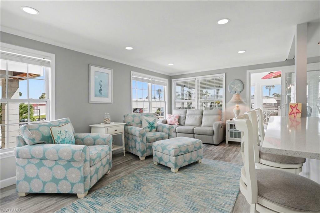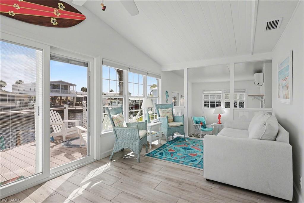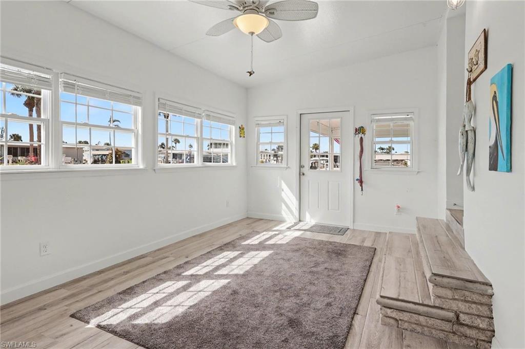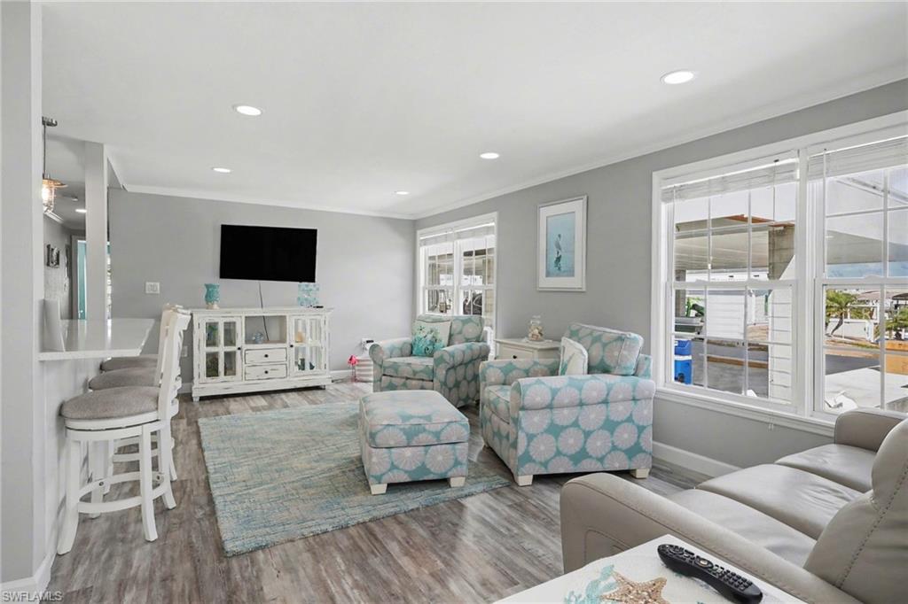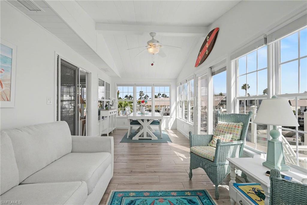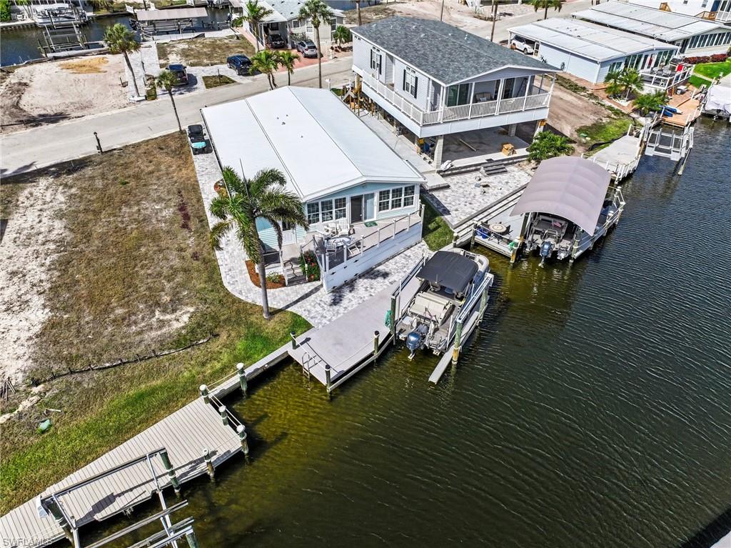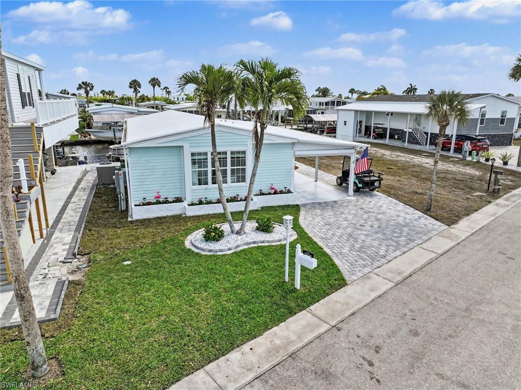 Experience relaxed coastal living in the highly sought-after 55+ boating community of Bayside Estates located just 2.5 miles from the island and its beautiful beaches. This rare 3-bedroom canal home blends charm, comfort, and the laid-back Florida lifestyle that makes this area so special. From the moment you arrive, lush landscaping and inviting curb appeal welcome you home. Inside, the property offers multiple living areas that provide flexible space for relaxing or entertaining. The gorgeous sunroom overlooking the canal fills with natural light and offers tranquil water viewsu2014an ideal spot for morning coffee or unwinding at the end of the day.The kitchen features quartz countertops and newer appliances, while thoughtful details throughout add warmth and character, including custom palm tree accent panels. Tile bathrooms, a spacious walk-in closet, durable cement board siding, and quality finishes enhance the homeu2019s comfort and style. For year-round comfort, the home includes central air along with mini-split systems for efficient cooling. Step outside to enjoy the deck and peaceful waterfront setting, perfect for relaxing and enjoying calm canal views. A hurricane-rated electric carport shutter adds convenience and storm protection.Life in Bayside Estates is all about the lifestyle. Residents enjoy live bands, boating events, card games, social clubs, and festive golf cart parades throughout the year. With so many activities and gatherings in the community, there is rarely a need to go far for entertainmentu2014it comes right to you. All of this is supported by very affordable HOA dues. Homes with three bedrooms in Bayside Estates are rarely available, making this a unique opportunity to own a move-in-ready waterfront home and start enjoying everything Southwest Florida living has to offer.