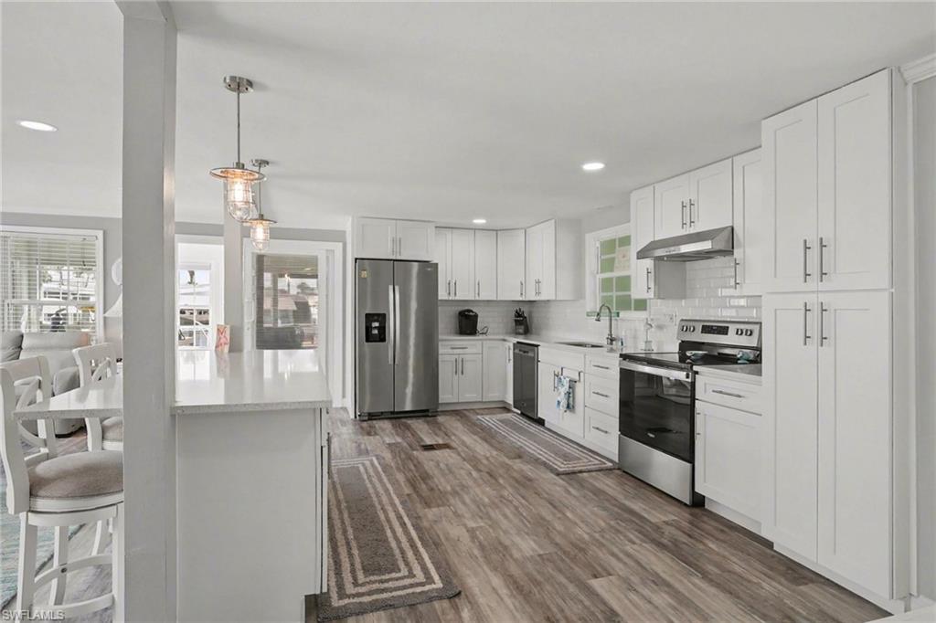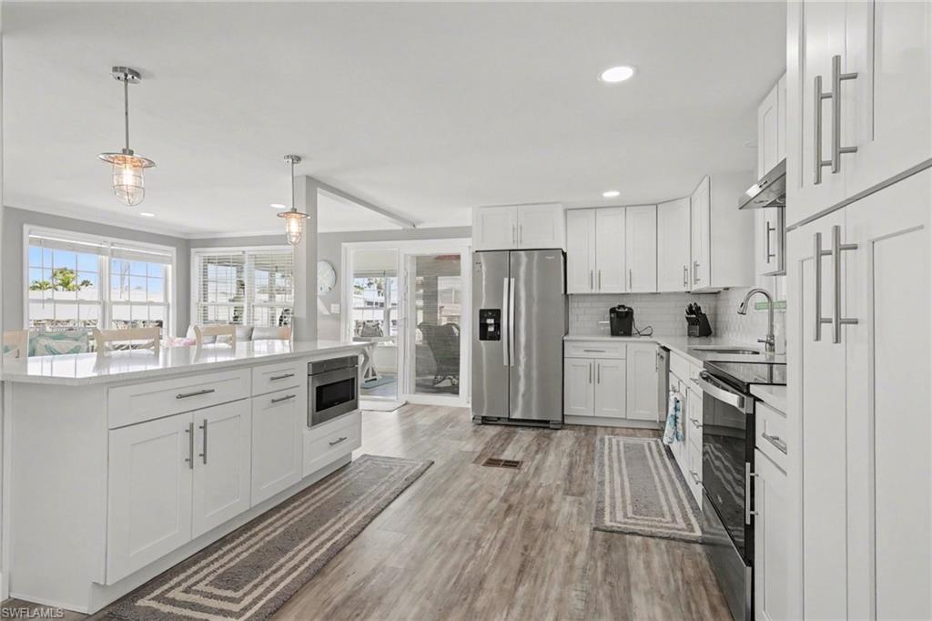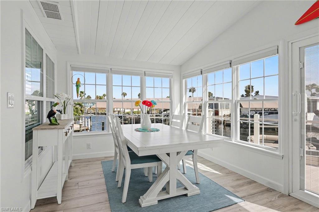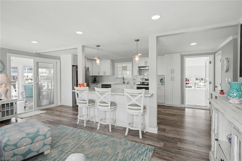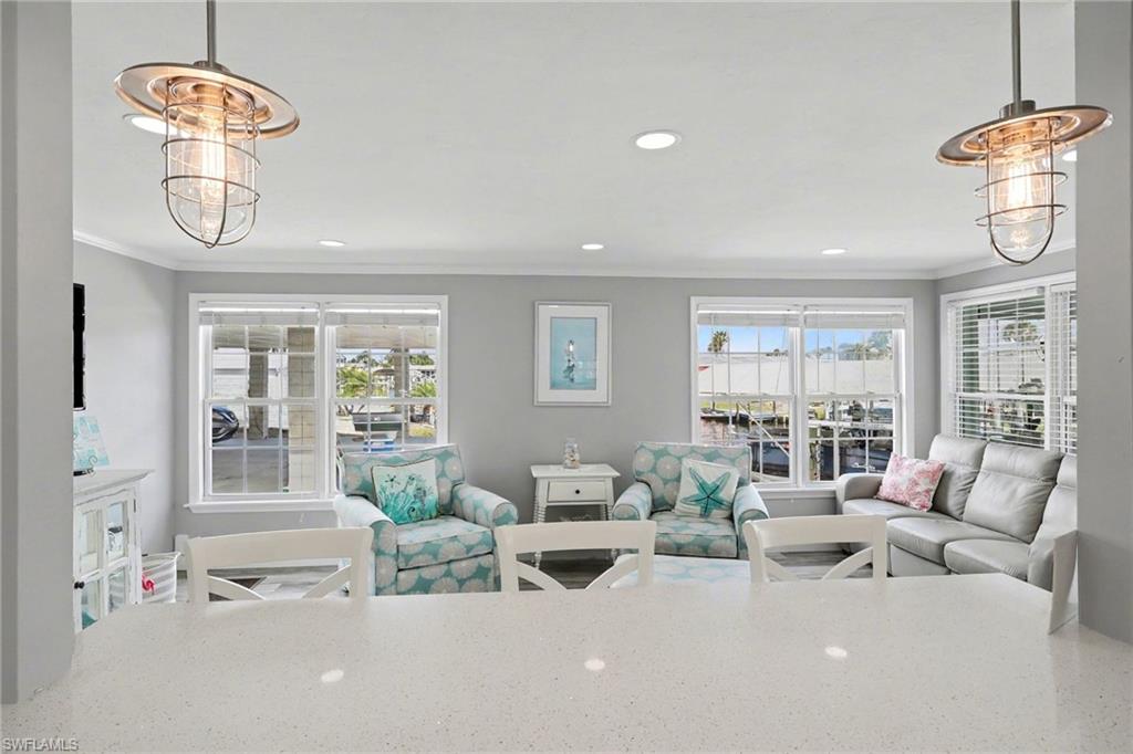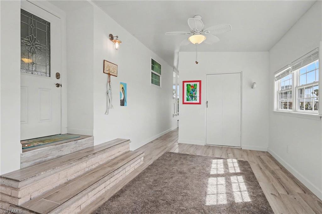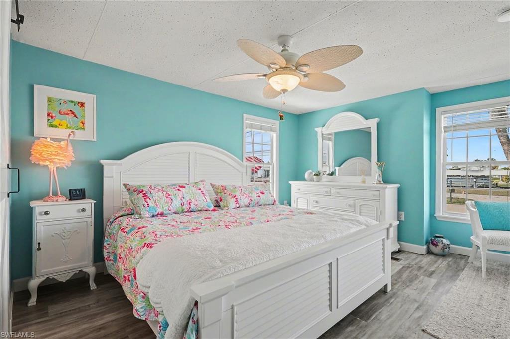 Experience relaxed coastal living in the highly sought-after 55+ boating community of Bayside Estates located just 2.5 miles from the island and its beautiful beaches. This rare 3-bedroom canal home blends charm, comfort, and the laid-back Florida lifestyle that makes this area so special. From the moment you arrive, lush landscaping and inviting curb appeal welcome you home. Inside, the property offers multiple living areas that provide flexible space for relaxing or entertaining. The gorgeous sunroom overlooking the canal fills with natural light and offers tranquil water viewsu2014an ideal spot for morning coffee or unwinding at the end of the day.The kitchen features quartz countertops and newer appliances, while thoughtful details throughout add warmth and character, including custom palm tree accent panels. Tile bathrooms, a spacious walk-in closet, durable cement board siding, and quality finishes enhance the homeu2019s comfort and style. For year-round comfort, the home includes central air along with mini-split systems for efficient cooling. Step outside to enjoy the deck and peaceful waterfront setting, perfect for relaxing and enjoying calm canal views. A hurricane-rated electric carport shutter adds convenience and storm protection.Life in Bayside Estates is all about the lifestyle. Residents enjoy live bands, boating events, card games, social clubs, and festive golf cart parades throughout the year. With so many activities and gatherings in the community, there is rarely a need to go far for entertainmentu2014it comes right to you. All of this is supported by very affordable HOA dues. Homes with three bedrooms in Bayside Estates are rarely available, making this a unique opportunity to own a move-in-ready waterfront home and start enjoying everything Southwest Florida living has to offer.