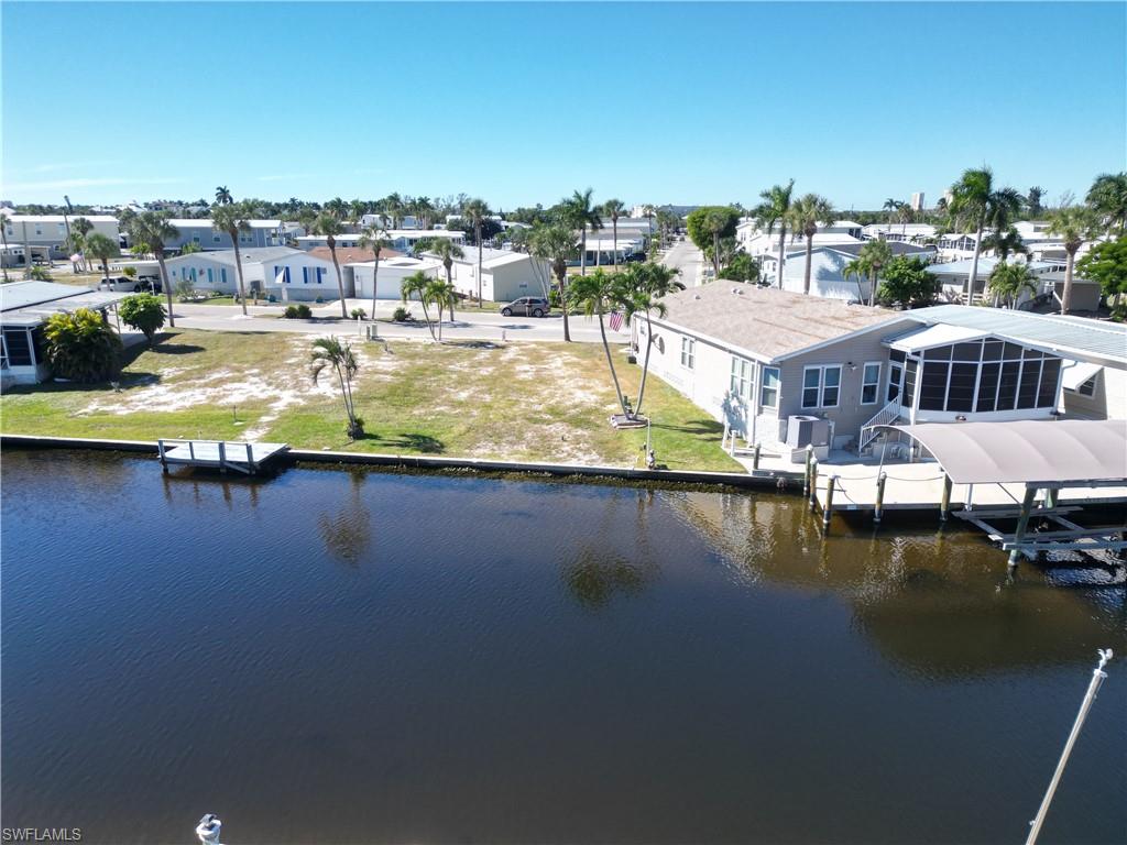 Bayside Estates has essentially two halfu2019s, split down the middle by Stevens Blvd. There is the retention pond side and the saltwater side. Both have their benefits. This lot is located on the retention pond side so there is always plenty of water in the canals. Once on the other side of the boat lift, the waterway to Hurricane Bay, Hell Peckney Bay, the Gulf of Mexico and beyond is completely unobstructed. Go shopping and pick out the manufactured home of your liking and have it delivered to this lovely lot and begin partaking in the benefits of this highly desirable community. As you can see, this lot has thousands of dollars in custom paver work, making your new home shine brightly. When looking to buy a vacant lot in Bayside Estates, you might consider a lot that has a seawall that is in good condition and a lot that already has a boat dock and boat lift included. This is one such lot. The boat lift has the aluminum structure in place for a boat cover. Bayside Estates is the best kept secret of Fort Myers Beach. This incredibly active and friendly 55+ community is the crown jewel on the gulf coast. Bayside estates is only 2.5 miles to the beach and is accessible by either car or boat--right from either your driveway or private boat dock. A very popular activity is riding your electric bicycles to the beach for the day and visit the world-famous Jimmy Buffettu2019s Margaritaville. Just don't step on a pop-top!!. Nearly all of the major retail vendors are within a very short driving distance for ultimate convenience. For those who donu2019t know a lot about Bayside Estates, it is a very fun place to call home---some would even say itu2019s a mature personu2019s playground. Whether you want to play pickleball, tennis or bocce ball or hang out at the community pool, or simply cruise the hood in your golf cart, there is always something going on around here. People are friendly and you will be warmly welcomed.