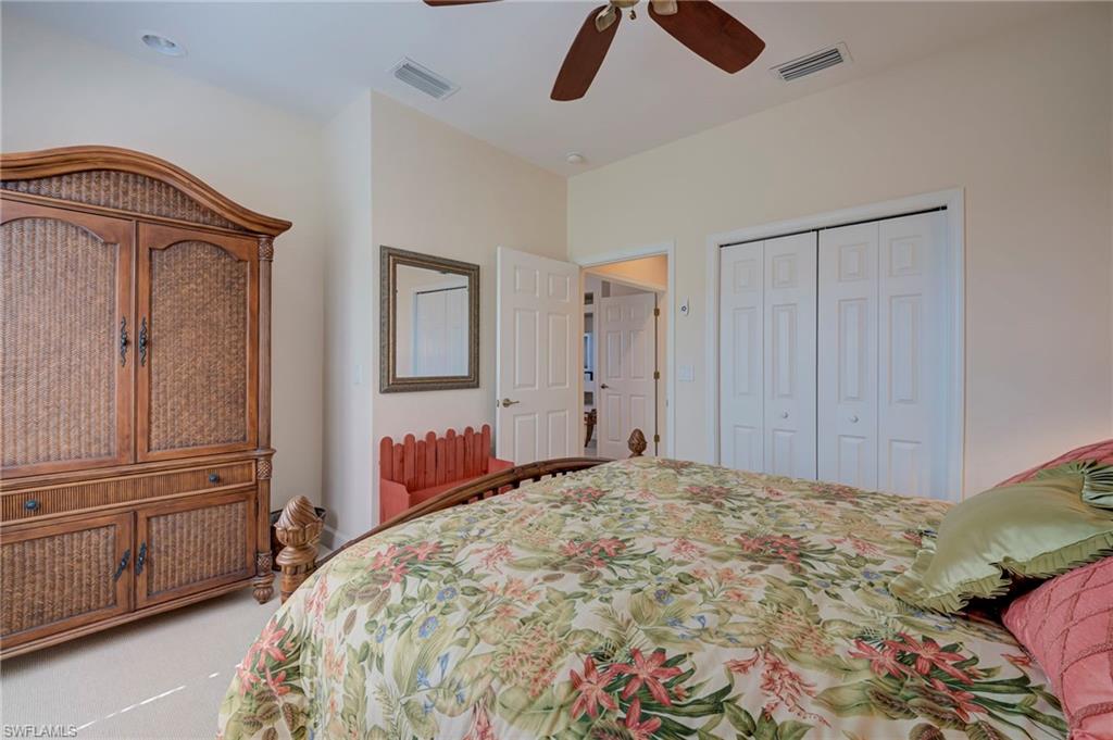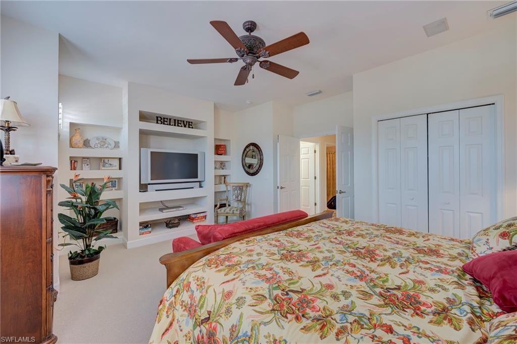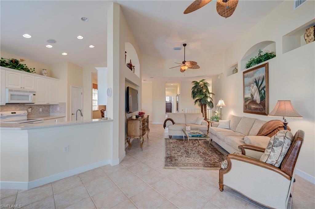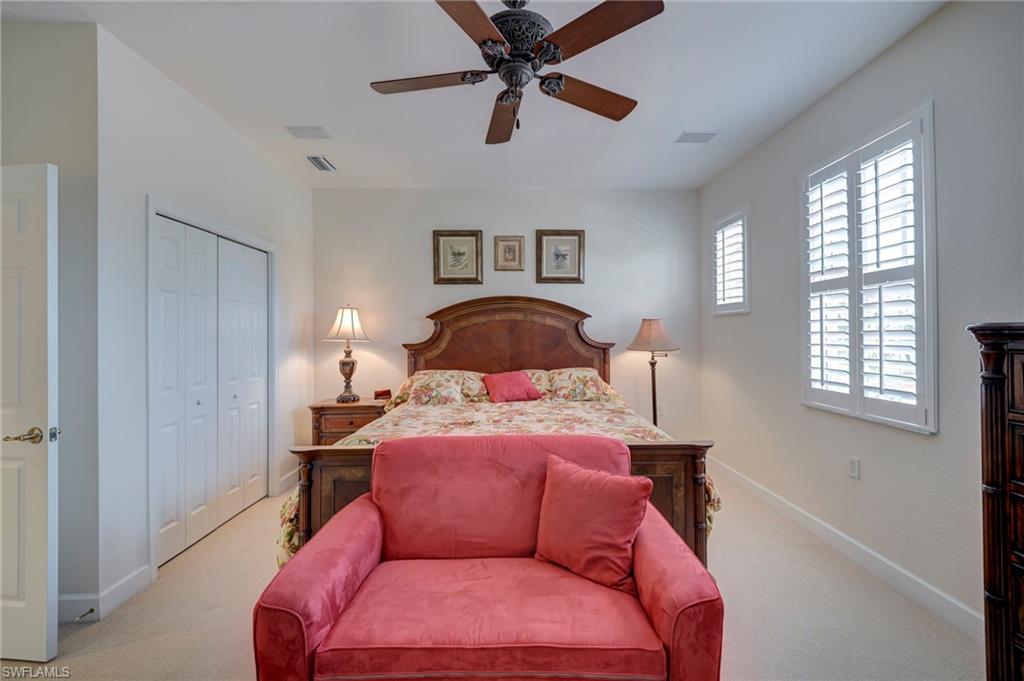 IMMACULATE LAKE VIEW CARRIAGE HOME u2013 TURNKEY FURNISHEDMove right in and enjoy beautiful lake views from this immaculately maintained, turnkey furnished second-floor carriage home located in a desirable gated community just minutes from Southwest Floridau2019s renowned beaches. Offering 2,040 square feet of bright living space, this spacious 3-bedroom, 2-bath residence features an open great room floor plan with volume and tray ceilings, abundant natural light, custom closet sytems and elegant crown molding throughout.The versatile front bedroom can easily function as a family room, guest room, or home office. The well-appointed kitchen flows seamlessly into the living and dining areas and opens to a large screened lanai, where you can relax and enjoy peaceful eastern lake views and the soothing sound of the fountainu2014perfect for morning coffee or evening unwinding.The primary suite offers a private retreat with a walk-in closet, dual vanities, a garden tub, and a separate shower.Additional features include an attached one-car garage, electric hurricane shutters, and exceptional maintenance throughout. Residents enjoy access to community amenities including a pool, fitness center, and social gathering spaces.Conveniently located near shopping, dining, entertainment, and Southwest Floridau2019s beautiful beaches, this home is ideal for enjoying the relaxed Florida lifestyle.