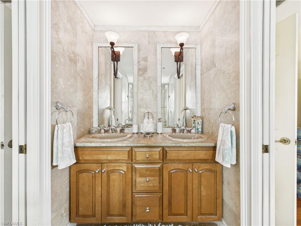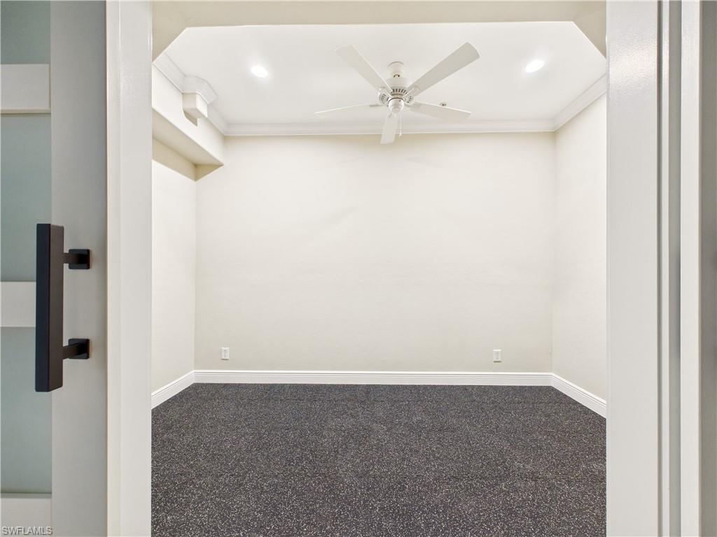 Step into a home that feels like a private retreat the moment you arrive. From the ultimate outdoor oasis featuring a two-story tiki hut to the extended lanai with an outdoor kitchen, fire pit, and even an outdoor shower, this property was designed for gathering, relaxing, and making memories.Inside, the home feels fresh and inviting with new interior and exterior paint and a 2023 roof for peace of mind. Plantation shutters and crown molding add a touch of classic charm throughout. The kitchen is beautifully updated with granite countertops, soft-close cabinetry, and a whole-house reverse osmosis system, giving the home that u201cclean, crispu201d feeling you canu2019t help but notice.The primary suite is a calming retreat with a tray ceiling, a walk-in closet with custom shelving, and a spa-like bathroom featuring a travertine countertop.Downstairs, the home opens up a world of possibilities. The home theater roomu2014complete with projector, screen, and built-in speakersu2014is perfect for movie nights, big games, and entertaining. Youu2019ll also find a dedicated exercise room with custom flooring, plus a roughed-in kitchen ready for your finishing touches if you want to expand your living or entertaining space.If you love adventure, youu2019ll appreciate the reinforced parking area designed to support a boat or motorhome, along with unique paver flooring in the garage. Itu2019s the kind of home that truly fits your lifestyleu2014whether that means staying active, hosting friends, or enjoying quiet evenings under the tiki hut.All of this is tucked in a great location close to restaurants, shopping, and the beautiful beaches Southwest Florida is known for.This is more than a homeu2014itu2019s a place where everyday living feels like a getaway.