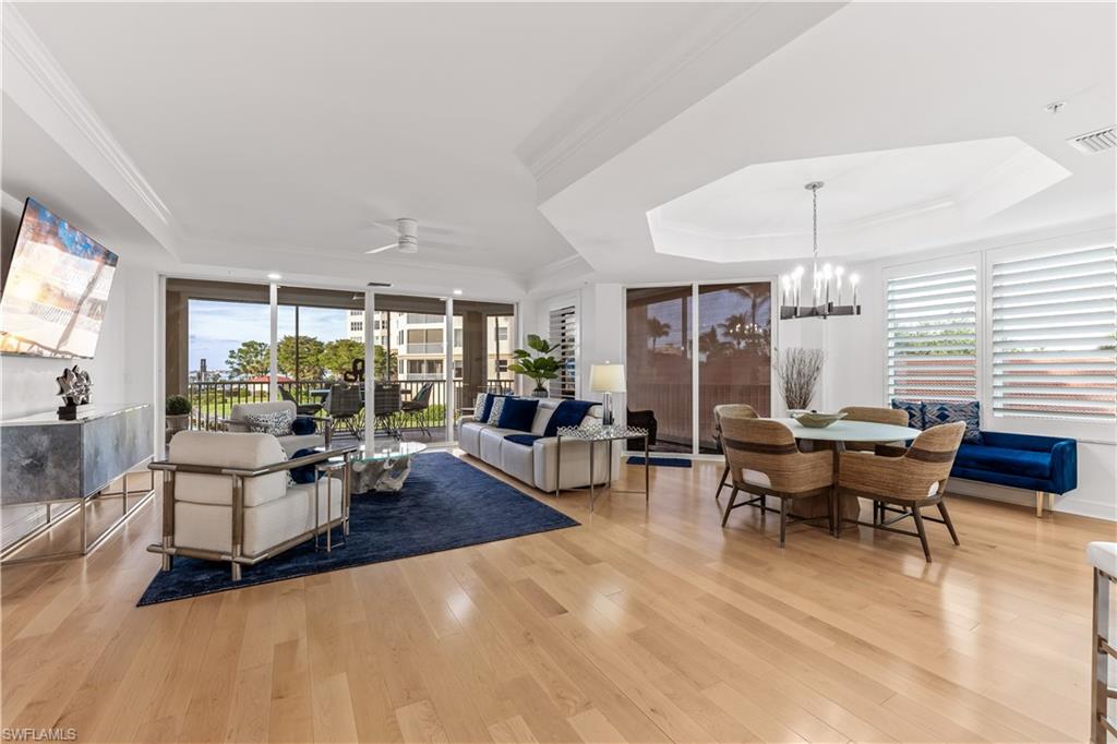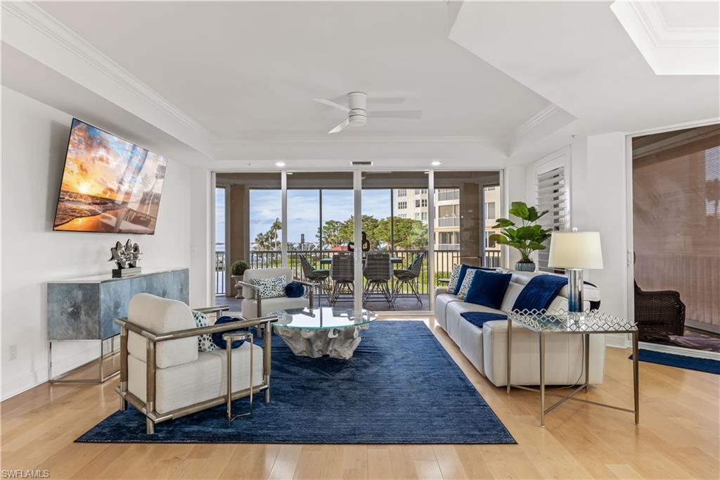 RIVERFRONT LUXURY WITH EXCLUSIVE BOATER'S ACCESS - This newly renovated condo provides a rare combination of luxurious living and immediate access to your aquatic adventures. Perched in a meticulously maintained, low-density building, this stylish condo boasts stunning river and marina views. Enjoy leisurely strolls along the private island and marina, all within a gated, secure environment offering the exclusivity of just two residences per floor with direct elevator access. Spanning over 2,440 square feet, the interior features three ensuite bedrooms, a spacious screened lanai, and two open lanais -- perfect for enjoying the captivating vistas. The chef-inspired kitchen is appointed with custom cabinetry, stone countertops, top-tier appliances, and wine refrigeration. Premium finishes elevate every space, from engineered wood flooring and designer lighting fixtures to high-impact windows and Storm Smart electric hurricane screens.Recent building upgrades include a new roof and a Generac generator for ultimate peace of mind. This turnkey offering includes gorgeous Robb & Stucky furniture, making it truly move-in ready. Additional conveniences include a deeded under-building parking spot, two storage rooms, a large community pool, exercise room, tennis/pickleball courts, and newly restored fishing pier. Private 50' x 18' dock with water, electricity, and ice machine, and a detached one-car garage, are also available for separate purchase. The HOA fees cover everything except personal interior insurance and electricity. Embrace the ultimate Florida lifestyle. Explore the virtual tour and schedule your private viewing of this extraordinary property.