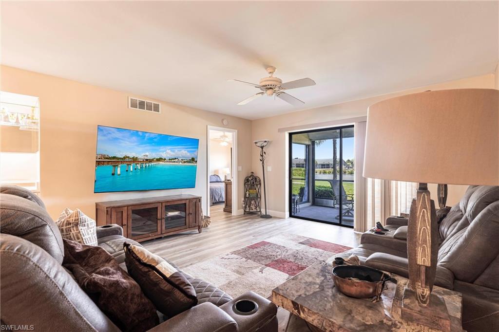 Lakefront Luxury with Golf & Resort Amenities u2013 First Floor Condo in Kelly Greens! Welcome to your Florida dream lifestyle in the heart of Kelly Greens Golf & Country Clubu2014a gated, bundled golf community just minutes from Fort Myers Beach and Sanibel Island!This light-filled, lakefront first-floor condo offers 2 spacious bedrooms + a den, 2 beautifully remodeled bathrooms, and a private detached 1-car garage. Step into a breezy open-concept layout with brand new flooring, designer quartz countertops, and a stylish eat-in kitchen featuring all-new cabinetry and ample prep space.The primary suite is a true retreatu2014featuring a bay window with serene lake views, dual closets, and a spa-inspired en suite with dual sinks and sleek new finishes. Enjoy morning coffee or sunset wine on either of your screened lanaisu2014one in front and one in backu2014perfect for soaking in the peaceful surroundings.Kelly Greens offers a lifestyle thatu2019s second to none with championship golf, HAR-TRU lighted tennis courts, pickleball, fitness center, and a vibrant clubhouse with indoor/outdoor dining at the restaurant and grill bar. Stay active and social with organized community events, club trips, racquetball, a putting green, and tranquil walking trails throughout the community.Tucked right behind the neighborhood pool and pet-friendly, this condo has it allu2014location, luxury, and low-maintenance living in one of Fort Myers most desirable communities. Priced to move quickly with a motivated seller.