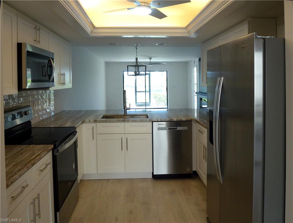 This 2 bedroom 2 bathroom condo on the 1st floor is located in the golfer's paradise. The golf course is right outside the windows in the back of the condo. In the front, there is a private 1 car garage. On the other side of the street, there is a community pool and several tennis/pickle ball courts. 20 minutes car drive and you can be on a Fort Myers Beach or Sannibel beaches. Stores and restaurants are within 10-15 minutes drive. Fort Myers Intl Airport is only 30 minutes ago. The condo has been recently remodeled and it's ready for an immediate occupancy.