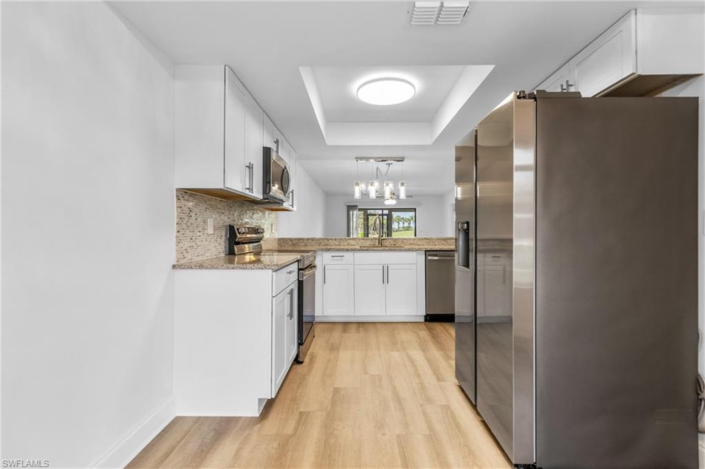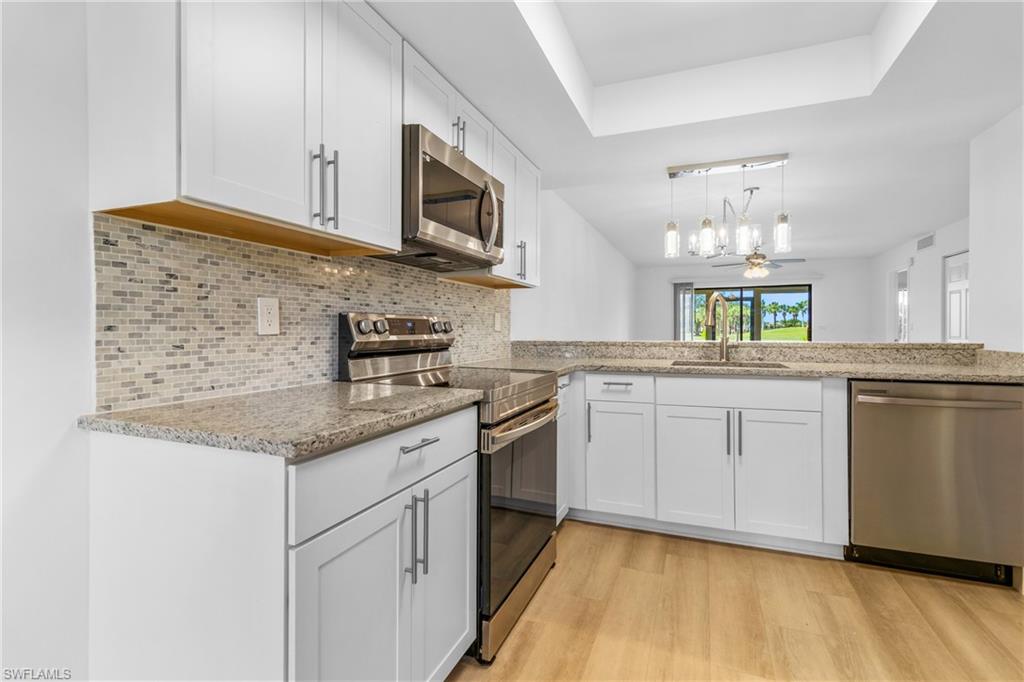 Welcome to the most impressive Manor unit in all of Kelly Greens u2013 fully renovated, impeccably maintained, and ideally located. This first-floor residence offers stunning golf course and water views, a serene park-like setting just outside your lanai, and effortless access to one of the communityu2019s beautiful pools, only steps away.Offering over 1,160 square feet of thoughtfully designed living space, this 2-bedroom, 2-bathroom unit is truly move-in ready. Every inch has been tastefully upgraded with high-end finishes, including a reimagined kitchen and both bathrooms. Impact glass windows provide security and energy efficiency, while also flooding the home with natural light and framing the lush scenery outside. The expansive windows and open layout create a bright, inviting atmosphere rarely found in similar units.One of the standout features of this home is the customized built-in storage throughout, particularly in the guest bedroom u2013 maximizing space without sacrificing style. The spacious lanai is the perfect place to unwind while taking in panoramic views of the golf course, tranquil water, and beautifully landscaped grounds.A covered carport with storage is included, and the unitu2019s location on the bottom floor provides easy access and additional convenience.Kelly Greens Golf & Country Club is a gated, financially sound, and highly desirable bundled golf community. Residents enjoy access to championship golf, tennis, fitness center, walking paths, clubhouse dining, and social events. And the location? Unmatched. Nestled just minutes from Sanibel Island, Fort Myers Beach, and Bunch Beach, youu2019ll enjoy quick access to some of Southwest Floridau2019s most beautiful coastlines, plus shopping, dining, and entertainment.Whether youu2019re looking for a full-time residence, a seasonal escape, or an investment opportunity, this property checks all the boxes. If real estate is all about location u2013 this one has it all.Donu2019t miss your chance to own one of the finest units in Kelly Greens. Schedule your private tour today!