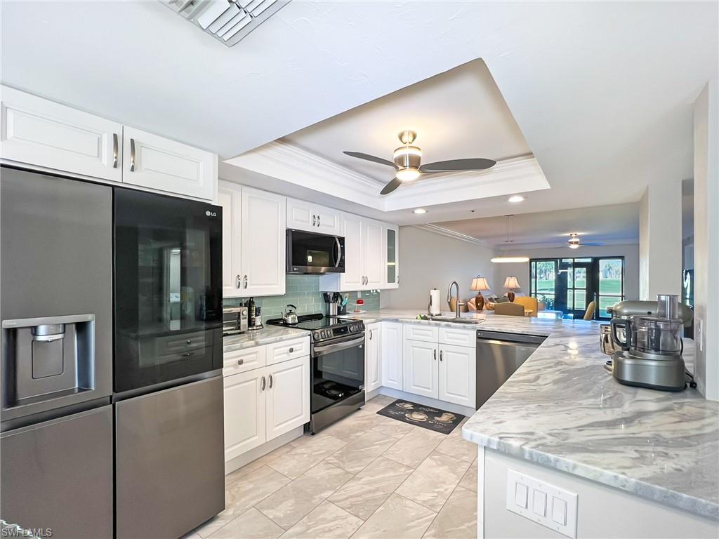Welcome to elevated Florida living in this recently renovated residence located in Kelly Greens, a premier golf community in Fort Myers. After parking in your private garage, step inside to enjoy new tile flooring throughout, elegant crown molding, and a bright open layout designed for effortless living. The upgraded kithen features white cabinetry, granite countertops, and stainless steel appliances. Both bathrooms have been tastefully updated with granite surfaces as well, creating a cohesive and upscale feel throughout the home. Two lanais add to the living space for everyday enjoyment and easy flow of traffic when entertaining. Kelly Greens is a meticulously maintained golf community, offering a fun yet challenging experience for golfers of all skills and abilities, as well as an active tennis and pickleball community, indoor and outdoor dining, a new fitness center, and many organized activities/trips appealing to a wide range of interests ....best of all is the friendly and welcoming community awaiting you! Located within minutes of Fort Myers Beach, Bunche Beach and Sanibel Island, and convenient to abundant shopping and dining options, and yet a short drive to SWF airport, this property offers an opportunity to own your own slice of paradise as a full time resident, snowbird, or as an investor.