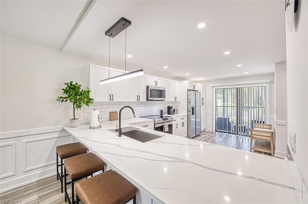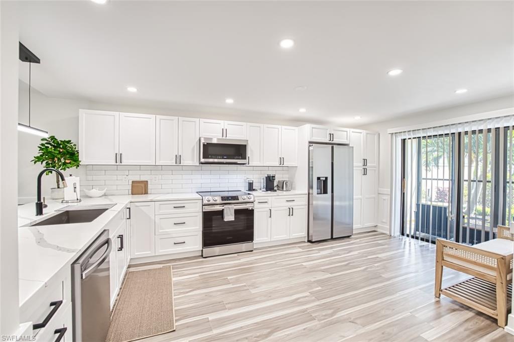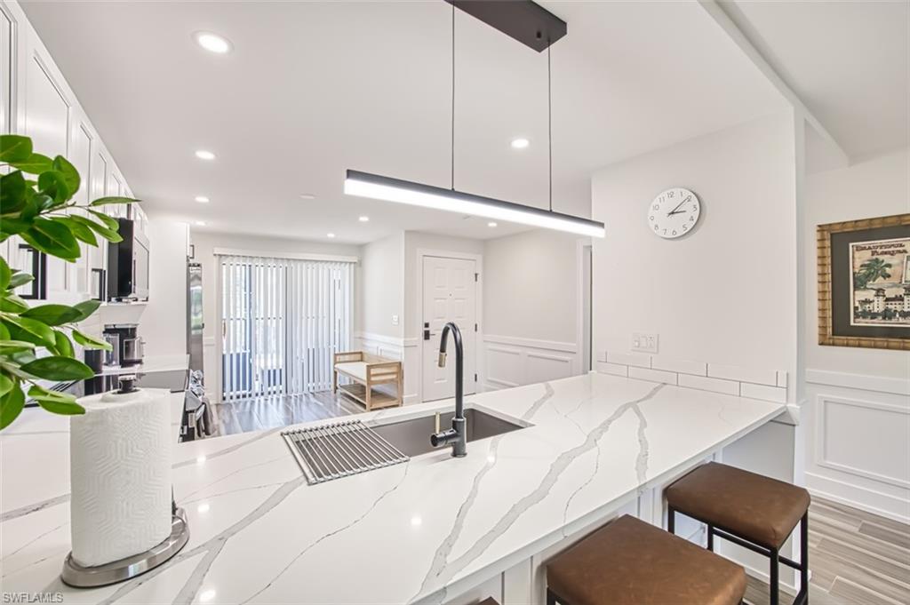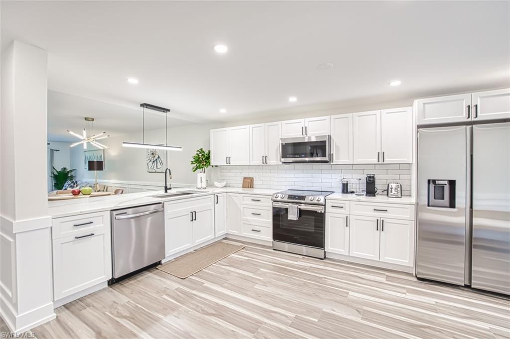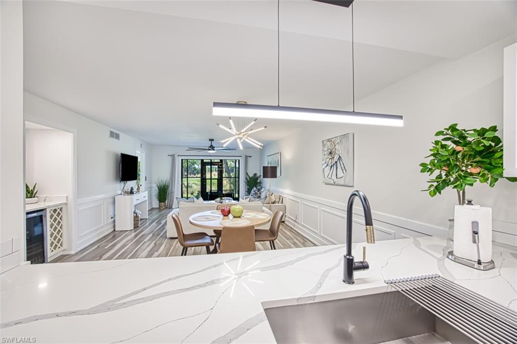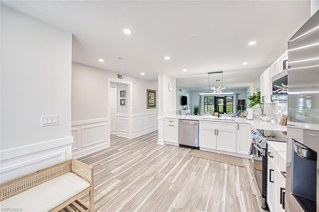 Beautifully remodeled and completely updated 2 bedroom 2 bathroom ground level condo with one car garage directly on the golf course. This condo is a short walk to the club house and features hard surface countertops and floors, stainless steal appliances, very well designed open kitchen remodel, modern light fixtures, all in a fantastic community. Kelly Greens is a gated private golf and tennis community located just minutes from the Gulf of Mexico/America...a short bike ride to Bunche beach and the world famous islands of Sanibel and FT Myers Beach. The golf course is in exceptional condition and the tennis courts are state of the art. The club house is completely remodeled and operating at 100%. Come experience the Florida Lifestyle at it's best in this condo and this community.