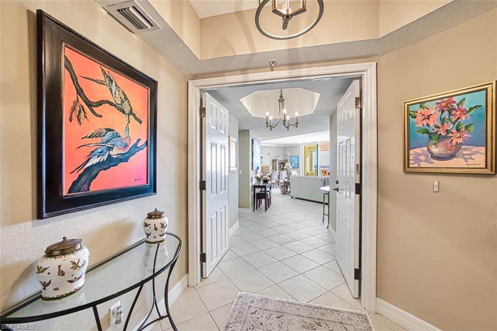 ALL systems are u2018GOu2019! This 12th floor condo is ready for you to directly move in. Over the past few years, a/c has been replaced, tankless water heater & HALO water purifier installed. Kitchen appliances are newer as well. Storm Smart shades add protection in addition to the impact glass. This condo-home is turn-key furnished, with a few personal art exceptions, You can move right in & start living the resort life-style you have desired. A typical day will include a secured elevator taking you up & opening into your private foyer. Double doors lead you into a spacious, open great room with floor to ceiling sliders. The view beyond is a showcase of nature at its best-a 25-acre crystal clear lake, 700+ acres of preservation land that is not only beautiful but offers protection, the bay & Gulf. You can see from the north end of FMB to the east end of Sanibel. Night or day, you can witness the historic lighthouse rising above the horizon. Watch the Key West Express, pirate ship and fishing boats leave the bay for the open waters of the Gulf. Sunrises & sunsets will be painted in the sky. Native birds roost in the trees of the preserve. You will actually see & hear fish jump in the lake. All of these scenes can be enjoyed from your lanai, great room, kitchen & primary bedroom. The lanai is screened & can be used for al fresco entertaining or day-to-day living. The kitchen is centralized so the family chef can interact with guests while creating a delicious meal served with a water view. White cabinets, granite counters & SS appliances create an enjoyable & functional space for meal prep. A walk-in pantry adds to the already generous cabinet storage. The primary in-suite is private, located opposite the guest bedrooms. The owners retreat has access to the lanai, a large window framing the same sparkling water views & 2 walk-in closets. The in-suite bathroom has a large walk-in shower, separate soaking tub, 2 individual sinks & commode closet. Your overnight guests will enjoy the privacy of 2 guest bedrooms & bathroom. 2 end parking spaces on the second garage level, large air-conditioned storage area as well as separate de-humidified storage space convey. You may never want to leave! But, if you do, there is plenty to do & enjoy. A 6000u2019+ completely renovated clubhouse encompasses a fitness center, yoga studio, billiard/poker room, gathering room, dining area, kitchen, media/meeting room, screened lanai as well as covered open outdoor dining space. The resort style, salt-water pool & spa sit on the lakeu2019s edge. A 1-mile walking /running shell path surrounds the lake. Canoes, kayaks & paddle boat are available for use on the lake. Bocchi ball, soon to be refurbished tennis & Pickleball courts are available for your use. A special park has been established for your furry family members. Owners may have 2 pets of any size. Outside the gates you can easily walk to a beach, restaurants, shopping, grocery or bike to FMB & Sanibel.