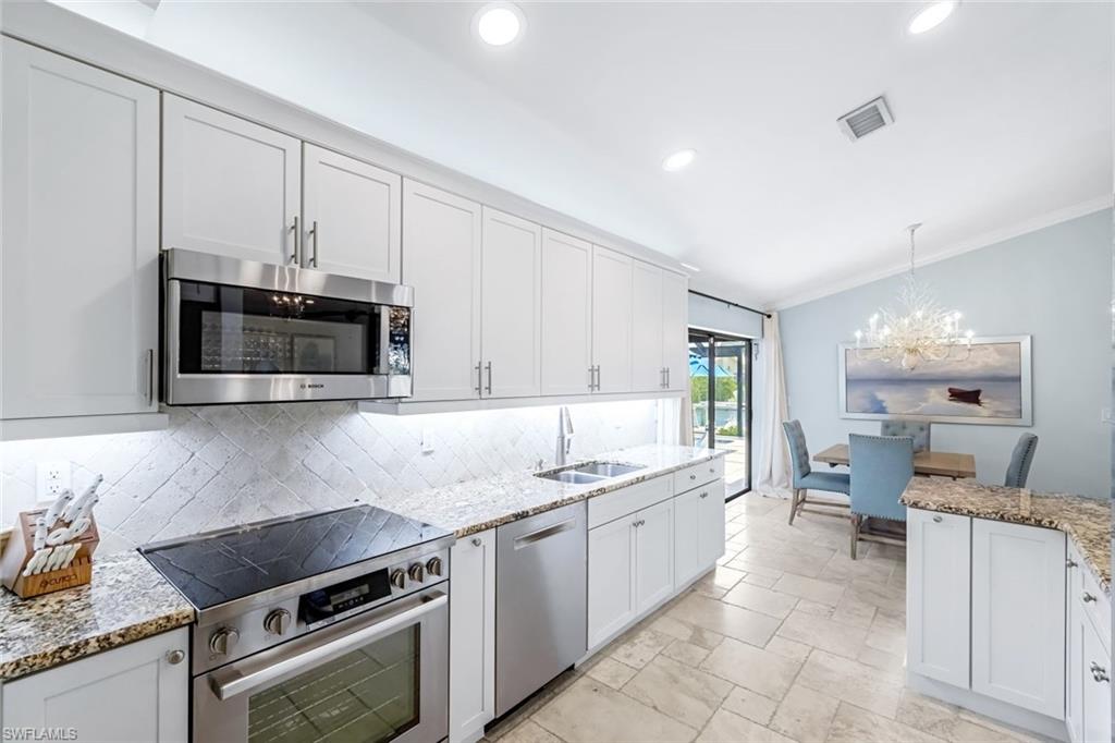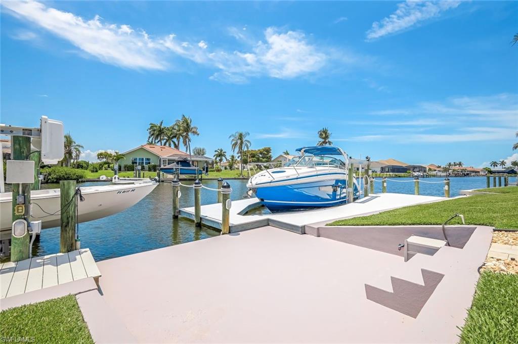 Welcome to the ultimate Florida lifestyle! This is the home you've been waiting for - an exquisitely remodeled & meticulously maintained pool home situated on a direct-access canal in the coveted Palm Acres neighborhood of South Fort Myers, just 4 miles from the Sanibel Causeway. HIGH AND DRY, this home remained untouched by water intrusion in the living area during Hurricanes Ian, Helene, & Milton. Hurricane impact doors, windows, & kevelor screens offer additional peace of mind. Flood insurance is assumable, $1254.00 annually! Natural light spills into every room of this home! As you arrive, the pavered circle driveway & lush custom landscaping greet you, complemented by a newly redesigned front exterior and custom outdoor lighting. A soothing lighted waterfall invites you into your new home! Step through the double glass entry hurricane impact doors & be captivated by breathtaking views of the outdoor oasis & serene canal. Discover the exquisite interior finishes, featuring solid wood doors throughout, extensive base & crown molding, complemented by vaulted ceilings that enhance the sense of space & elegance.The interior has been beautifully remodeled, featuring travertine french pattern tile floors that flow seamlessly throughout. The formal living & dining rooms exude elegance, while the bright & updated kitchen showcases granite countertops, white cabinetry, travertine tile backsplash, under-cabinet lighting, above multi colored mood lighting, SS Bosch appliances, refrigerator featuring a 15 bottle wine drawer, induction stove top, breakfast bar. The open kitchen connects effortlessly to the informal dining area & family room, offering scenic views of the outdoor living space. New interior paint. Designed with a split floor plan for optimal privacy, this home boasts multiple access points to the screened lanai & pool area, including from the 2nd bedroom, guest bath, formal living room, & primary suite. The 3rd bedroom, currently set up as a home office giving you flexibility. All bedrooms offer large redesigned California Closets walk-in closets. The expansive primary suite offers a tranquil retreat, complete with a spa-inspired bathroom featuring dual sinks. An oversized two-car garage with mini-split AC adds extra comfort and convenience with an epoxy floor, slat wall installed for organization. Next, step outside to your personal Florida paradise. The outdoor space features a newly redesigned pool with sun shelf, in-pool loungers, waterfall, and stunning marble-paved deck. A hot tub invites you to relax, while two boat docks with lifts (5,000 lb and 20,000 lb) and Trex decking with a walk around dock deck provide easy access to the open waters of the Caloosahatchee River and the Gulf of Mexico. In just minutes, you can be cruising to the best boating and fishing spots in SW Florida. There is a built in outdoor BULL gas grill on the side of the home. This Palm Acres beauty is your gateway to living in paradise. SEE THE FABULOUS VIDEO!
