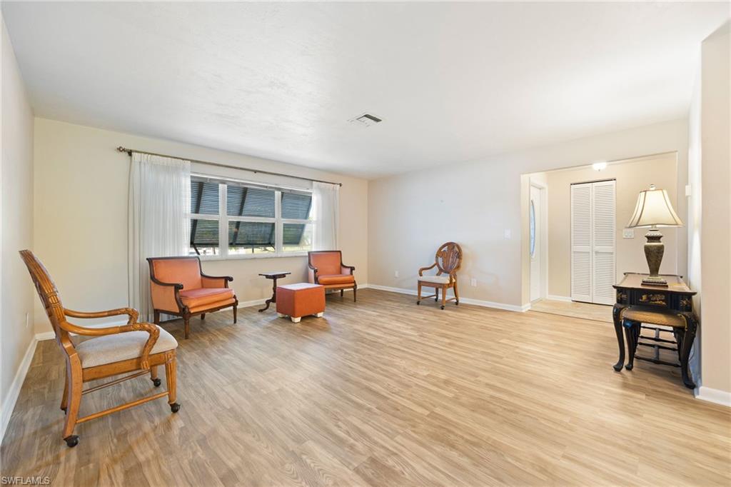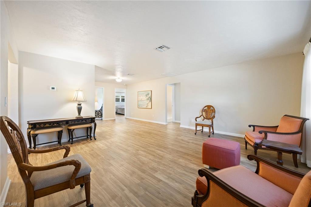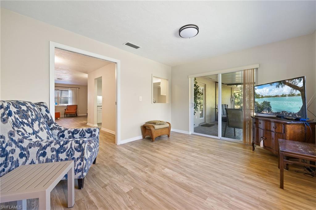 Remodeled after Hurricane Ian with fresh finishes and updates, this Fort Myers single-family home in Tahitian Shores delivers easy Florida living on a spacious corner. Inside, youu2019ll find new flooring, new baseboards, new interior doors, and double-pane windows (non-impact) for added comfort and efficiency. The layout is simple, functional, and flexible: 2 bedrooms, 2 full baths plus a large bonus/flex room that can easily serve as a home office, gym, or family room. Enjoy meals in the dedicated dining area or the eat-in kitchen, which looks out to the fully screened lanaiu2014perfect for morning coffee and breezy evenings. Step outside to a private backyard oasis with mature, shade-giving trees and tropical charm, featuring macadamia, camphor, and garambola (star fruit) trees. The oversized property leaves plenty of room to add a pool and spa, expand the home, or create the outdoor entertaining space youu2019ve been dreaming of. No HOA restrictions means more freedom for boats, hobbies, and your lifestyle. Convenient to Sanibel Island, Fort Myers Beach, Margaritaville Beach Resort, plus dining, shopping, and entertainmentu2014while still tucked into a quieter neighborhood setting.