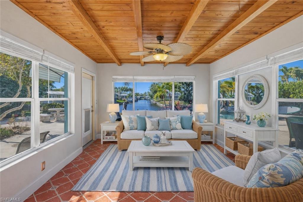 Experience classic Florida charm paired with modern upgrades in this beautiful Old Florida Bungalow, ideally positioned on one of the Best Lots in McGregor Isles. The lot is on a western exposure overlooking intersecting canals, offering stunning sunset views and direct, no-bridge access to the Gulf of Mexico. Perfect for boating enthusiasts! Located on a quiet cul-de-sac in the desirable McGregor Isles Community with no HOA restrictions. This home combines character, comfort and convenience. Check out the custom plastered ceilings with hand contoured center designs. The Den/Florida Room has the best views of the intersecting canals where the fish jump and the water sparkles. There is carefree tile throughout and an upgraded kitchen with high-end appliances, including an induction stove top. Also included is a separate laundry room for the washer/dryer and storage. For peace of mind, there is a high efficiency whole house Generator with automatic transfer switch and two 250-gallon propane tanks. The light-filled interior flows seamlessly to an exceptional outdoor living space featuring a newer saltwater pool with waterfall and a sunning deck. The saltwater pool is well equipped with a new electric heater and pool filter canister. All windows have heavy duty aluminum manual hurricane panels and fasteners for quick installation. This home sat high and dry during all the hurricanes. Just minutes to Sugar Sand Beaches, waterfront dining, marinas, and shopping, this home offers a premier boating lifestyle. Make this your Florida waterfront dream home!