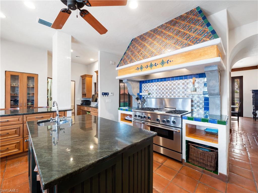 Welcome to 5844 Riverside Lane. Experience timeless elegance in this exquisite old-world estate designed by renowned architect W.A. Bud Lawrence. Perfectly positioned along the Caloosahatchee River, this home exudes charm and character unlike any other property on the market today. Boasting an exceptionally rare 177 feet of river frontage and an expansive backyard complete with a basketball court, the sense of space, privacy, and exclusivity is unmatched. With over 4,800 square feet of living area, the home features four generously sized bedrooms, an upstairs den, a temperature-controlled library, a TV room, a formal dining area, a breakfast nook with some of the best views in the home, and a grand living room with soaring ceilings. Step outside the kitchen to discover multiple intimate courtyard seating areas that evoke the ambiance of a Mediterranean villa. The pool area offers breathtaking river views, a comfortable pool size, and ample deck space for lounging or entertaining. Distinctive architectural details include copper gutters, Venetian plaster walls, tongue-and-groove wood beam ceilings, hand-carved solid wood doors, custom metal railings, authentic buckshot-detailed wood floors, Mexican Saltillo tile, and Chicago brick accents throughout. Modern upgrades complement the craftsmanship, including a new tile roof (2023), new dock (2023), newer HVAC systems, impact-rated windows and doors, premium kitchen appliances, and a 500-gallon buried propane tank. Constructed entirely of concrete block on both levels, this home offers enduring built quality and strength rarely found in homes today. Located in the Sunset Cove neighborhood off of McGregor Boulevard, one of Fort Myersu2019 most coveted waterfront enclaves, this residence provides convenient access to Downtown Fort Myers, Sanibel Island, Fort Myers Beach, RSW International Airport, premier shopping and dining, top-rated schools, and so much more. Embrace the unmatched lifestyle offered at 5844 Riverside Lane where old-world craftsmanship meets modern luxury on the banks of the Caloosahatchee.
