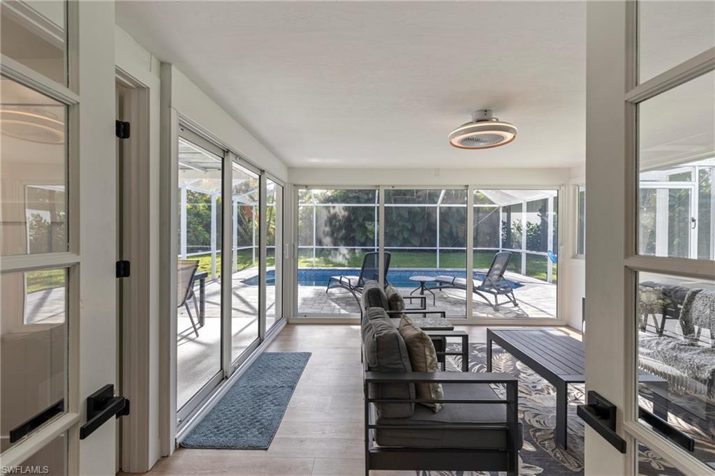 Make no compromises in this fully remodeled home in the heart of historical Mcgregor corridor. Nested in one of Fort Myer's most desirable neighborhoods, between McGregor Boulevard and the river, this pool home invites you to enjoy all the modern conveniences in a serene palm lined street steps away from the Caloosahatchee River. Updated inside and out, this home's open floor plan integrates a functional and elegant kitchen, ample dinning room and an inviting family room. The primary bedroom is spacious, beams with natural light from two picture windows, has a walk-in closet and a renovated primary bathroom, with dual sinks, and a gorgeous walk in shower. Three guest bedrooms - one currently furnished as an office - offer your guests privacy and comfort. The stylish furnishings and decor can be purchased with the home, allowing you to move in bringing only your personal items. The true indoor/outdoor lifestyle can be enjoyed in your enclosed Florida room, an enclosed, comfortable sitting space adjacent to a covered outdoor dinning area overlooking the pool and your private landscaped backyard. Twin Palm Estates' residents enjoy Fort Myer's beautiful sunsets over the river in an active, walkable and friendly neighborhood with no HOA.