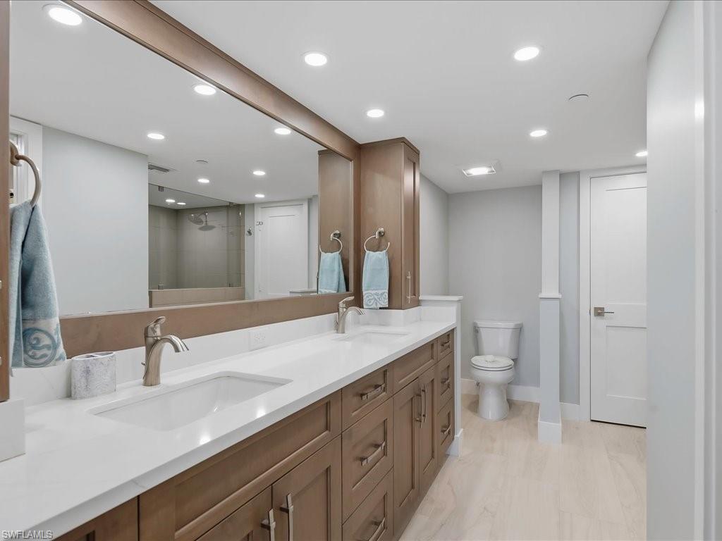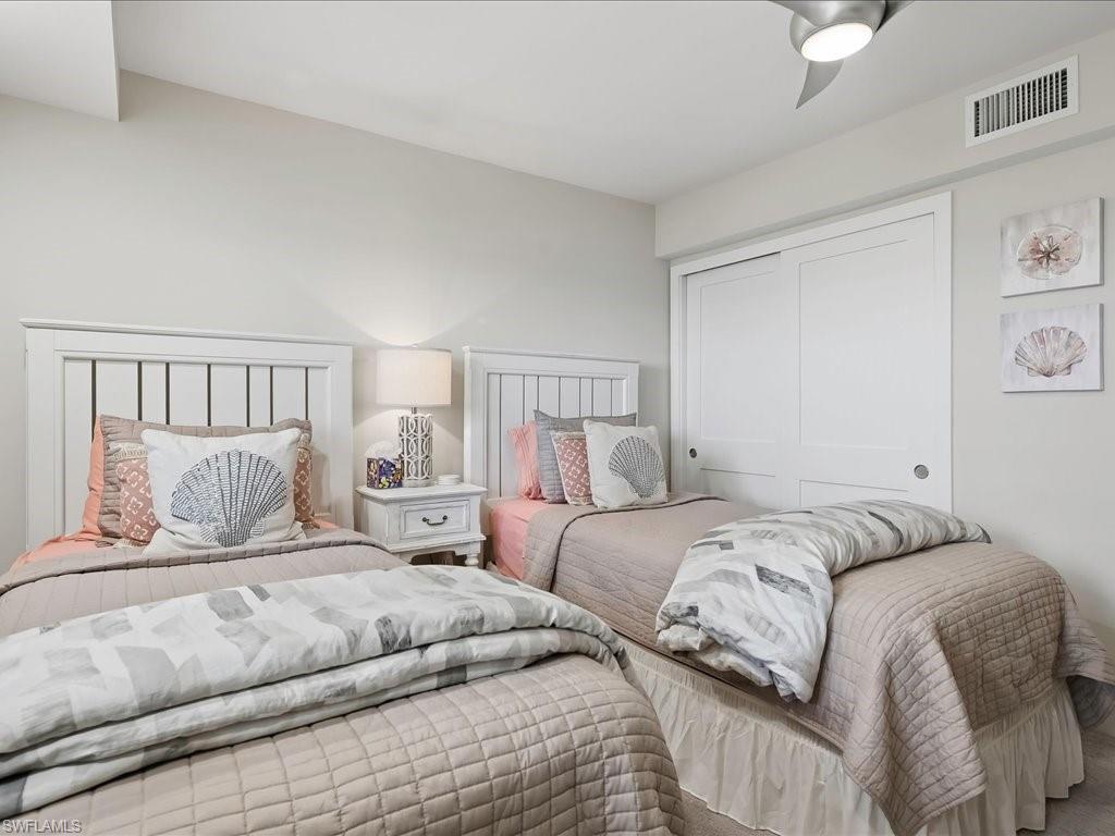 Imagine a recently renovated spacious 2 bedroom upper floor residence with westerly sunset views every day and full beach views from Tigertail/Hideaway beach to Cape Marco. Cheerful, clean, inviting, captivating. This is what youu2019re looking for u2013 move in ready, already renovated and updated, furnished in modern style. Large living room overlooks the beach and features balcony with electric roll down storm shutters for easy use when you leave. Walk in showers in each bathroom, dual sinks in main bath, residence laundry, accent lighting, excellent kitchen design, impact windows. One of the most photogenic properties on the beach, the Crescent Beach condominium offers an extensive dignified palm lined entry drive, undercover parking of course, extra spacious sun deck around the heated pool, beach boardwalk, fitness room, and secure entry to the building. The Association is in excellent financial shape, the building in updated condition to meet todayu2019s rigorous safety & structural standards, the management proven over many years