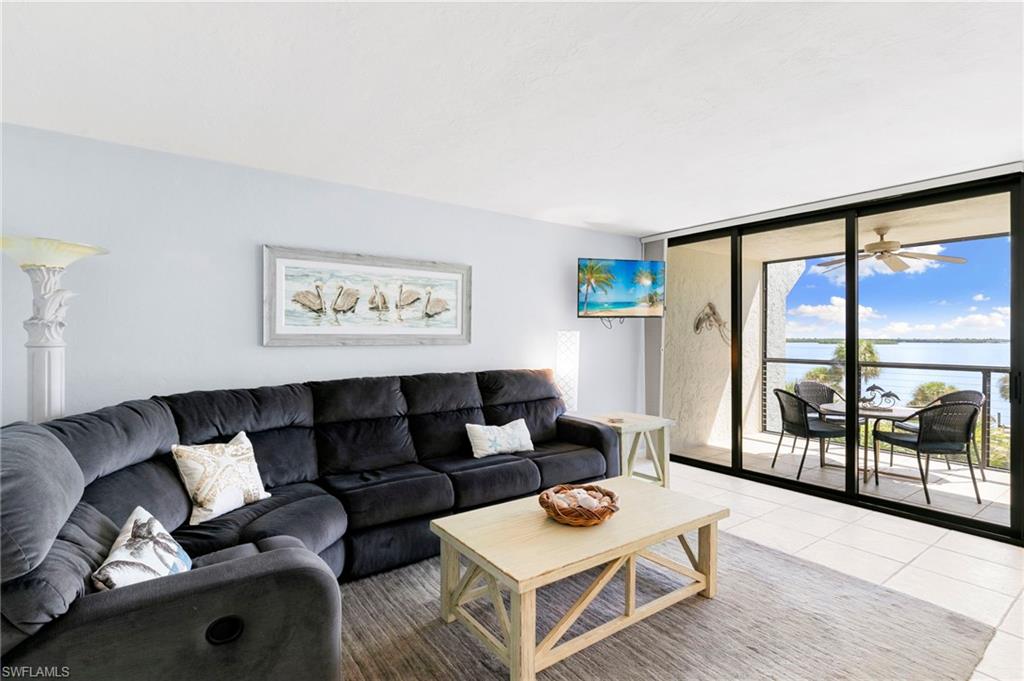 Welcome home to your own waterside oasis! With massive views of the Marco River, the Jolley bridge, and surrounding islands your abundance of sunrises, sunsets, boat traffic, and dolphins are endless! The community of Riverside Club truly offers all you would need for the perfect island lifestyle. Between the on-site marina which supplies gas, bait, and beer, to the tennis and pickleball courts your options for hobbies are vast. The property offers two pools and hot tubs, boat trailer storage, a new community clubhouse, fishing pier, and available boat slips for lease at only $600 per year!! This one bedroom/ one bath has a thoughtful floor plan pointing all main living areas to the gorgeous water view. The lanai offers a brand new cage with new screens. High impact windows and sliders have been added providing peace of mind and storm protection. Other updates include new granite kitchen counter top, sink/garbage disposal, newer blinds, newer hvac system with WiFi thermostat, new hot water heater, fridge, stove, dishwasher, and microwave. The walk in shower has been tastefully remodeled, and new furniture includes king size memory foam bed, new wall hangings, dressers, couch with hide-a-bed and recliner. This wonderful condo has tile throughout with convenience of laundry in unit and is within walking distance to olde Marco with the famous snook inn, bike rentals, shops, and a ton of delicious dining from fine dining to tiki huts on the water itu2019s got it all! It also allows nightly rentals which allows for great rental income potential!