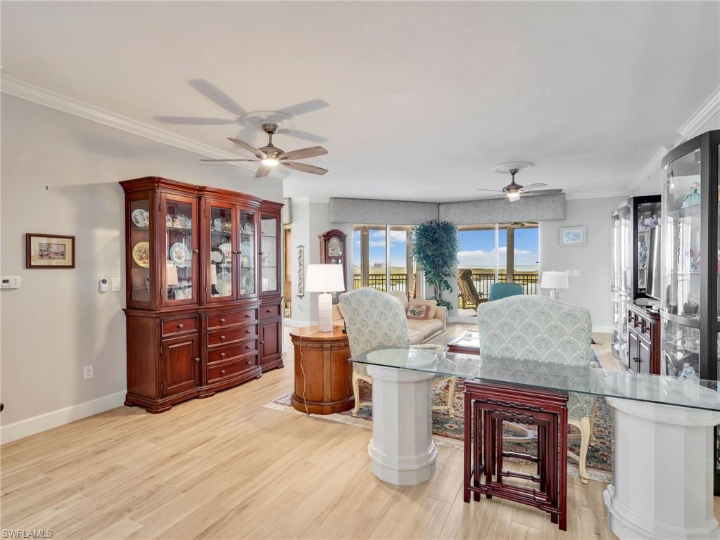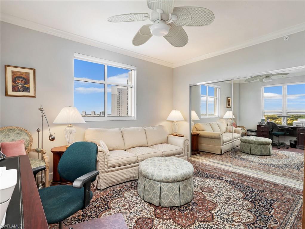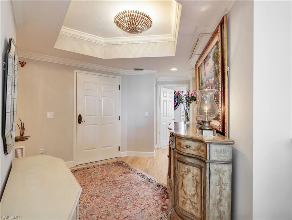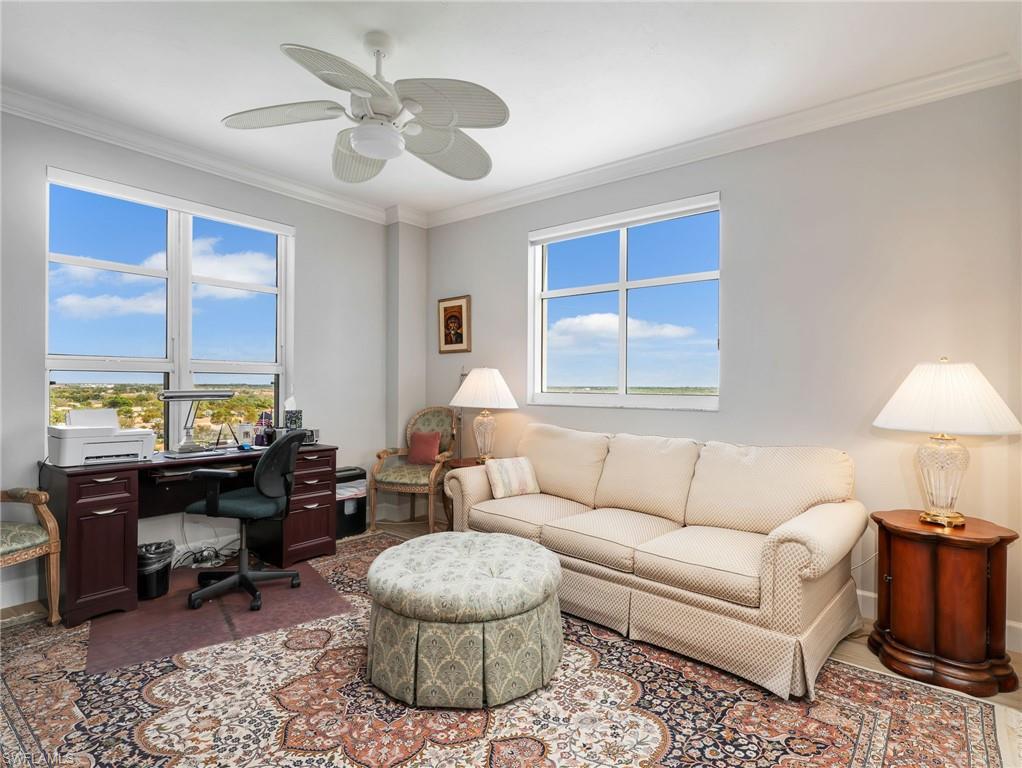 Perched on the 9th floor of Tower Pointe at Arbor Trace, this spacious 3-bedroom, 2.5-bath residence offers 2,030 square feet of living space with a desirable split-bedroom floor plan designed for comfort and privacy. Beautiful porcelain tile flooring throughout provides a clean, modern look that is both durable and low-maintenance. Enjoy abundant natural light and southwest exposure, offering warm afternoon sun and stunning gulf sunset skies from your private vantage point. The open living and dining areas flow seamlessly, creating an ideal setting for both everyday living and entertaining. The split layout places the guest bedrooms apart from the primary suite, allowing residents and visitors to enjoy their own space. Arbor Trace is a resident-owned, independent living community that offers exceptional amenities, including a resort-style heated pool, fitness center, tennis/pickleball, bocce courts, golf putting green, two libraries, special events, and gourmet dining at the clubhouse. Benefit from comprehensive support services such as 24-hour medical monitoring, transportation to medical appointments, shopping, and group outings. Arbor Trace is a vibrant 55+ community that offers the unique advantage of deeded condominium ownership with 100% equity and no financial or medical requirements, allowing you to rent, sell, or pass your home to your heirs. Enjoy peace of mind with an on-site assisted living if you need it.