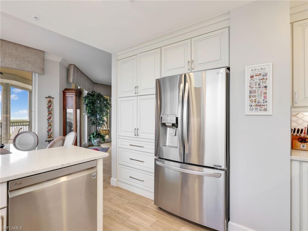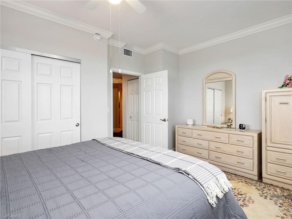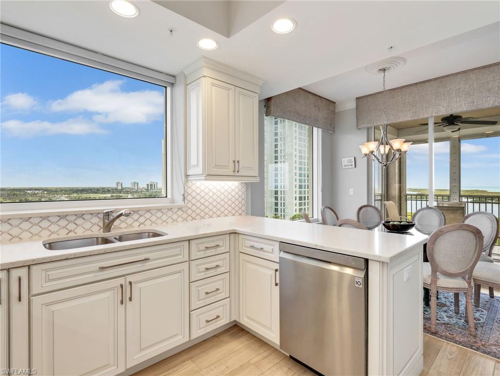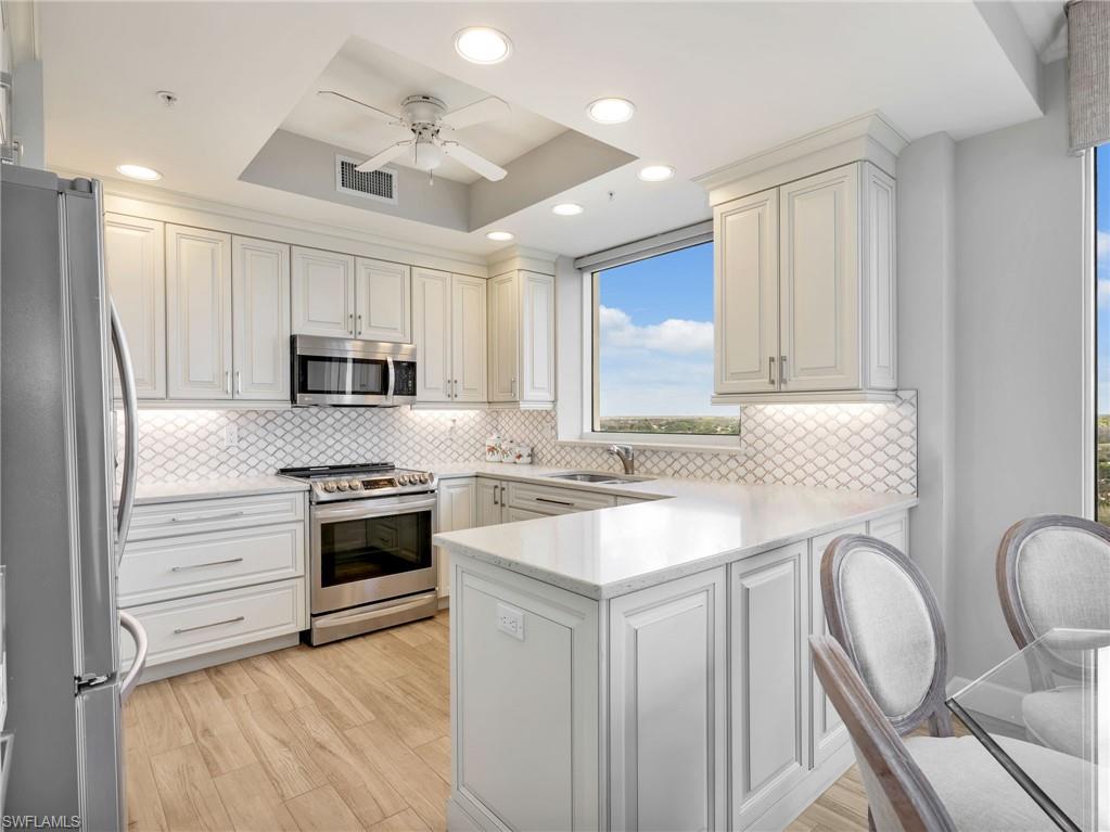 Perched on the 9th floor of Tower Pointe at Arbor Trace, this spacious 3-bedroom, 2.5-bath residence offers 2,030 square feet of living space with a desirable split-bedroom floor plan designed for comfort and privacy. Beautiful porcelain tile flooring throughout provides a clean, modern look that is both durable and low-maintenance. Enjoy abundant natural light and southwest exposure, offering warm afternoon sun and stunning gulf sunset skies from your private vantage point. The open living and dining areas flow seamlessly, creating an ideal setting for both everyday living and entertaining. The split layout places the guest bedrooms apart from the primary suite, allowing residents and visitors to enjoy their own space. Arbor Trace is a resident-owned, independent living community that offers exceptional amenities, including a resort-style heated pool, fitness center, tennis/pickleball, bocce courts, golf putting green, two libraries, special events, and gourmet dining at the clubhouse. Benefit from comprehensive support services such as 24-hour medical monitoring, transportation to medical appointments, shopping, and group outings. Arbor Trace is a vibrant 55+ community that offers the unique advantage of deeded condominium ownership with 100% equity and no financial or medical requirements, allowing you to rent, sell, or pass your home to your heirs. Enjoy peace of mind with an on-site assisted living if you need it.
