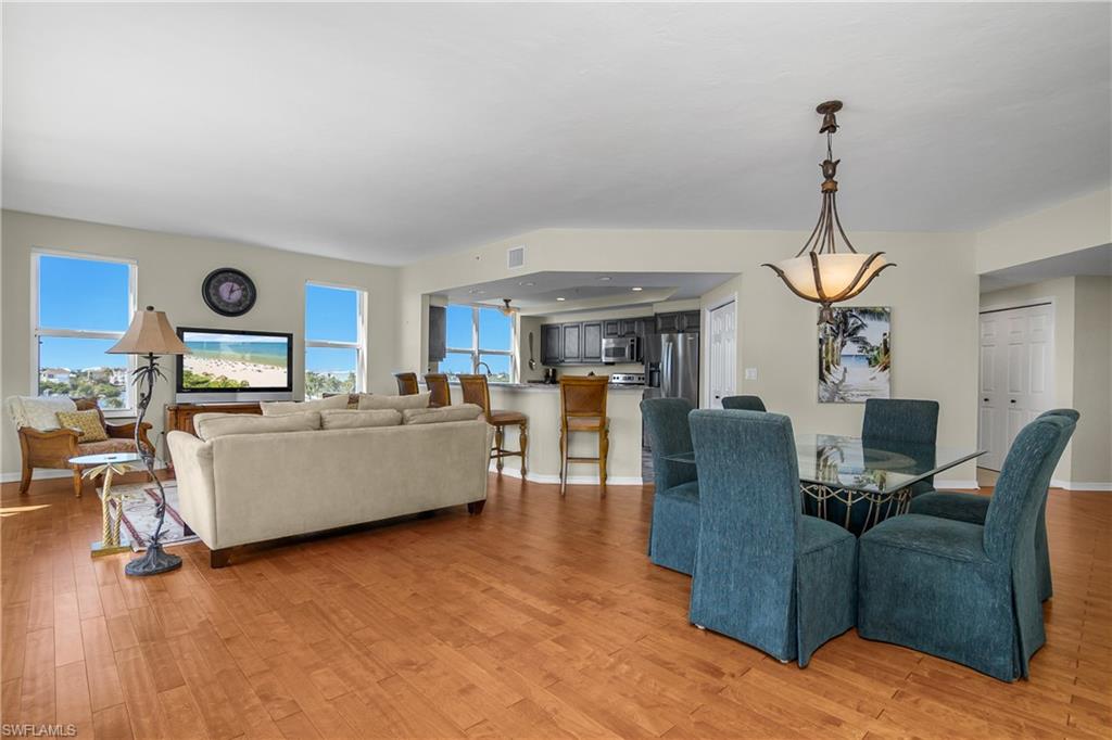 Sweeping bay views, direct Gulf access, and steps to the beach u2014 this is Florida at its finest at Bridgewater, a highly desirable boutique condo community. For boating enthusiasts, a private deeded boat slip is available for purchase, providing direct Gulf access with no bridges u2014 a rare and coveted opportunity. For putting your toes in the sand, youu2019re a short walk away from Barefoot Barefoot and Bonita Beach. Or relax at home and feast your eyes on panoramic water views from every room as well as spectacular sunsets and an array of sparkling lights after dark. Itu2019s the very best of coastal living in this updated 3-bedroom, 2-bath condo perched on the 5th floor. This SOUTH-FACING, END UNIT residence is bathed in natural light and captures stunning views everywhere you turn. Inside, the inviting open floor plan showcases 9-foot ceilings, 8-foot sliders, and seamless indoor-outdoor living that brings the wateru2019s beauty right to your lanai. The remodeled eat-in kitchen features granite countertops, stainless steel appliances, large pantry, and a cozy breakfast nook u2014 complemented by a nearby formal dining area ideal for entertaining. The spacious primary suite is a serene retreat with his-and-hers closets and a beautifully redone bath offering dual vanities and an oversized walk-in shower. Two large guest bedrooms feature good-sized closets with built-ins. Bridgewater offers a true resort-style experience, surrounded by lush tropical landscaping and highlighted by a heated Bayfront resort-style pool and spa, expansive sun deck, fishing pier, BBQ grills, secured entry, two newly refurbished elevators, ample guest parking, and a private ground floor storage locker. Bridgewater is impeccably maintained and well managed, with reasonable fees. The complex also features a NEW ROOF, attractive entry fountain and freshly painted exterior. Truly, this is relaxed coastal livingu2014 the perfect place to enjoy sunrise strolls, sunset views, and everything in between.