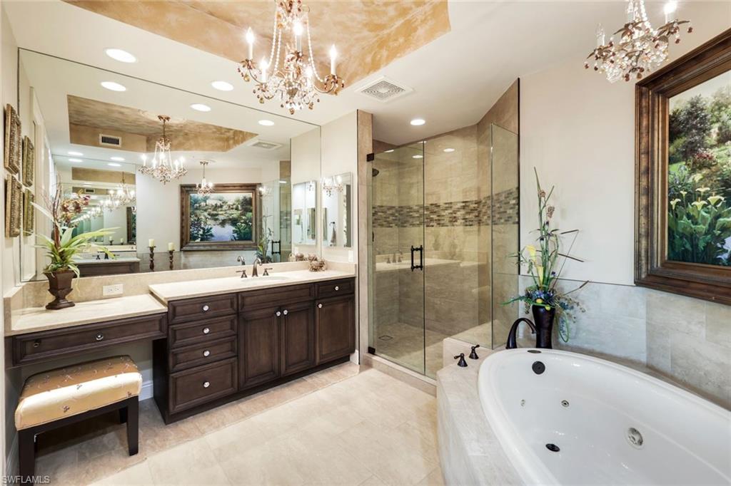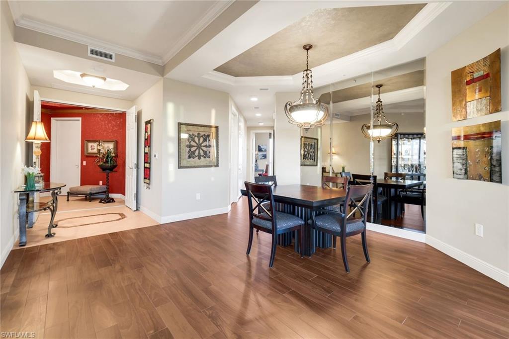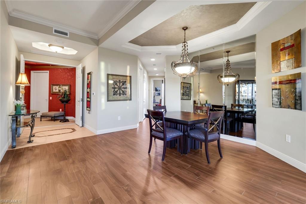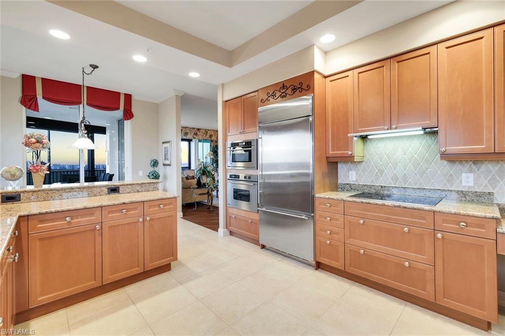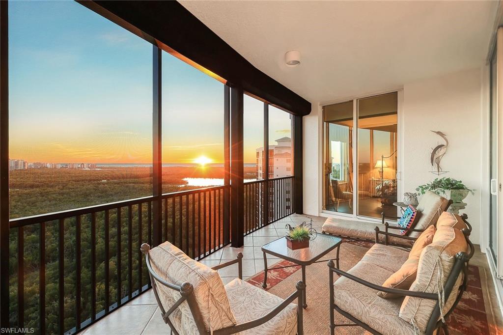 Experience luxury living in the heart of Naples with this stunning `mini-penthouse` that offers breathtaking 17th-floor views of Turkey Bay and the Gulf, where you can watch birds meander through the sky over the preserve, dolphins play in the bay and see endless sunsets over the gulf. The residence boasts a seamless blend of elegance and functionality, featuring a private elevator entry, updated flooring throughout, custom window treatments, and exquisite custom paint applications. The spacious kitchen is a chef's delight, equipped with stainless steel appliances, granite countertops, and rich wood cabinetry. The master bath is a sanctuary, featuring new tile, a frameless shower, rich wood cabinetry, dual sinks, and a luxurious jetted tub. This unit is unique to others offering EXTENDED CEILING HEIGHT, wrap around lanai views, an OVERSIZED 2 CAR PRIVATE GARAGE with a spacious storage room located directly behind it, perfect for a workbench or housing water toys. Residents enjoy exclusive access to the PRIVATE AMENITY CENTER for Nevis and Montego Towers, offering a resort-style pool with spa, a fitness room, an entertainment room, and a cabana with a fireplace, along with two guest suites for overflow visitors and on-site management. Located just miles from the pristine white sand beaches of Delnor-Wiggins and Vanderbilt, and minutes from Mercado's upscale shopping and dining, this property combines luxury, convenience, views and unparalleled comfort. Offered furnished and sold with a 1 year home warranty to the new buyer at closing. Tarpon Cove Yacht & Tennis Club is optional. This offers a resort style pool with tiki bar, dining options, tennis, fitness center, pro shop and beach shuttle service by boat. Inquire with list agent for more details.