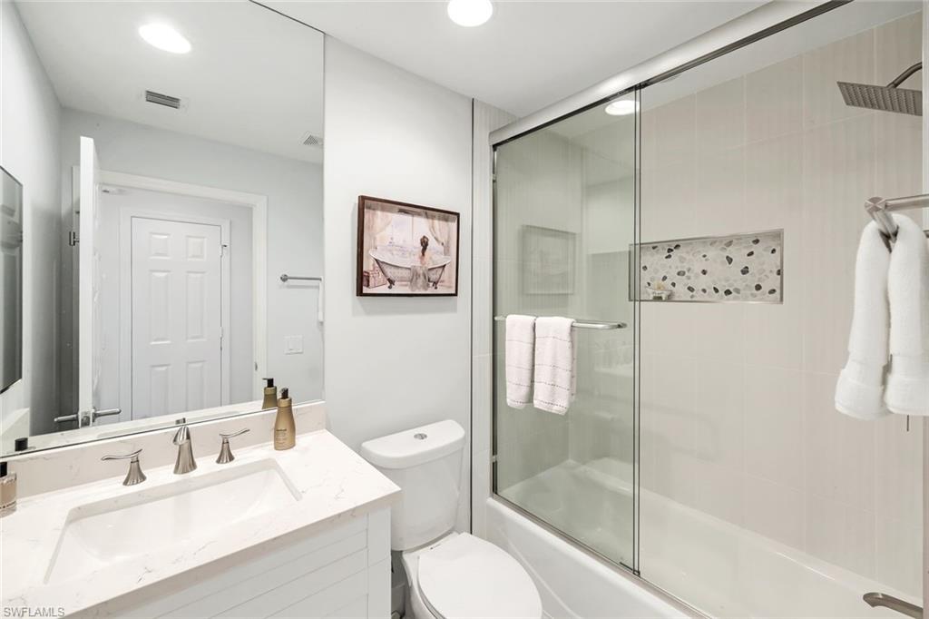 Welcome to Caribe at Cove Towers! A gated luxury high-rise community perfectly positioned along the tranquil Wiggins Bay in North Naples.This recently renovated 3-bedroom, 2-bath residence blends timeless style with modern comfort, featuring a spacious open-concept layout. Features include new, wood-like plank tile flooring, tray ceilings, recessed lighting, and upgraded electrical and plumbing fixtures throughout.The newly renovated kitchen is designed for both beauty and function, showcasing brand-new quartz countertops, brand-new stainless-steel GE built-in wall microwave & oven, new LG refrigerator & dishwasher, and a brand-new, sleek induction cooktop & hood. The utilities room includes brand-new LG, ThinQ Washer & Dryer. The primary bedroom has new custom closets by Closets by Design.Enjoy peace of mind with impact-resistant windows and electric storm shutters, along with garage parking and a private storage locker.Cove Towers is located in North Naples just minutes from Mercato, Waterside Shops, & The Pavilion.Residents at Cove Towers enjoy access to resort-style amenities, including a community pool, clubhouse, fitness center, tennis courts, EV charging, marina access, on-site dining, and private beach access. Optional Tarpon Cove Club membership provides even more opportunities to embrace the Naples lifestyle u2014 with a private boat shuttle to the beach, social activities, and waterfront dining.Come experience the perfect blend of luxury, comfort, and coastal charm at Caribe in Cove Towers u2014 your slice of paradise in Naples awaits!