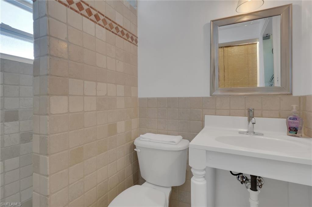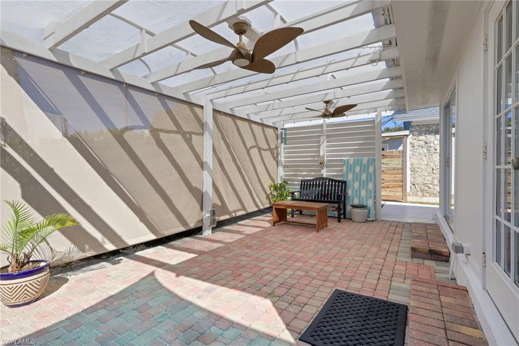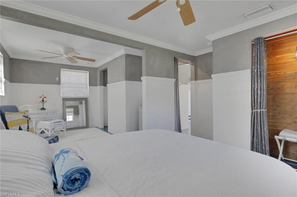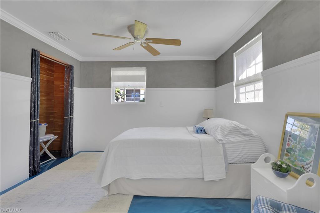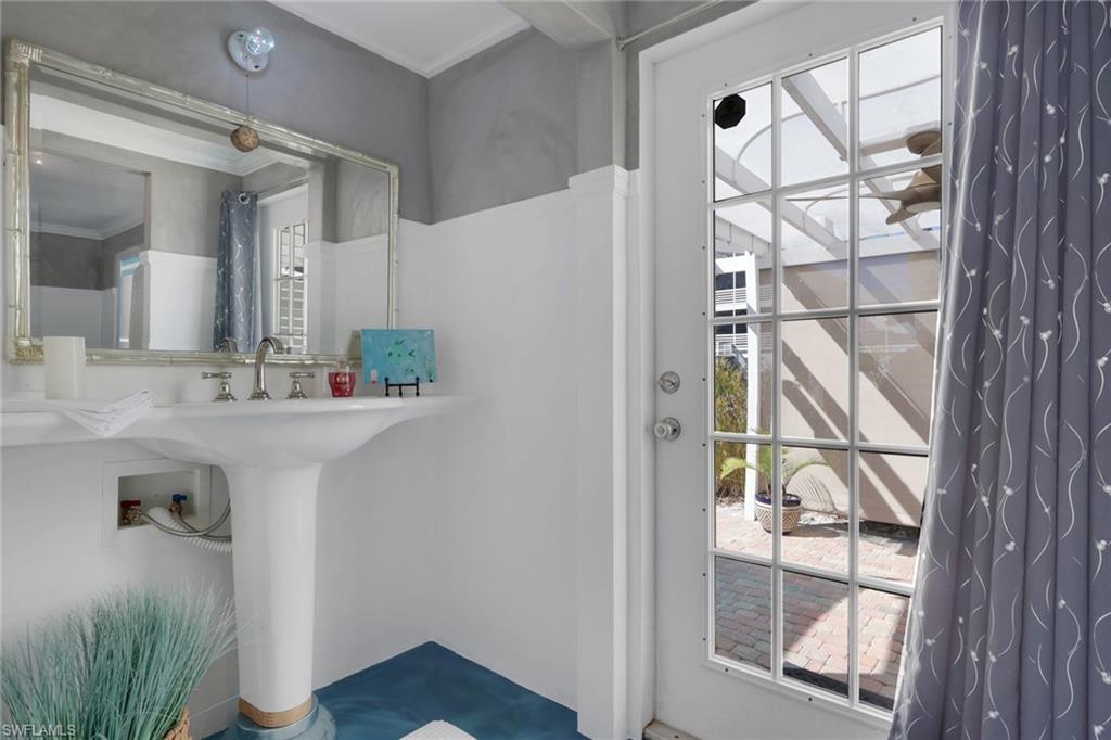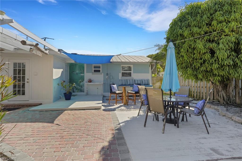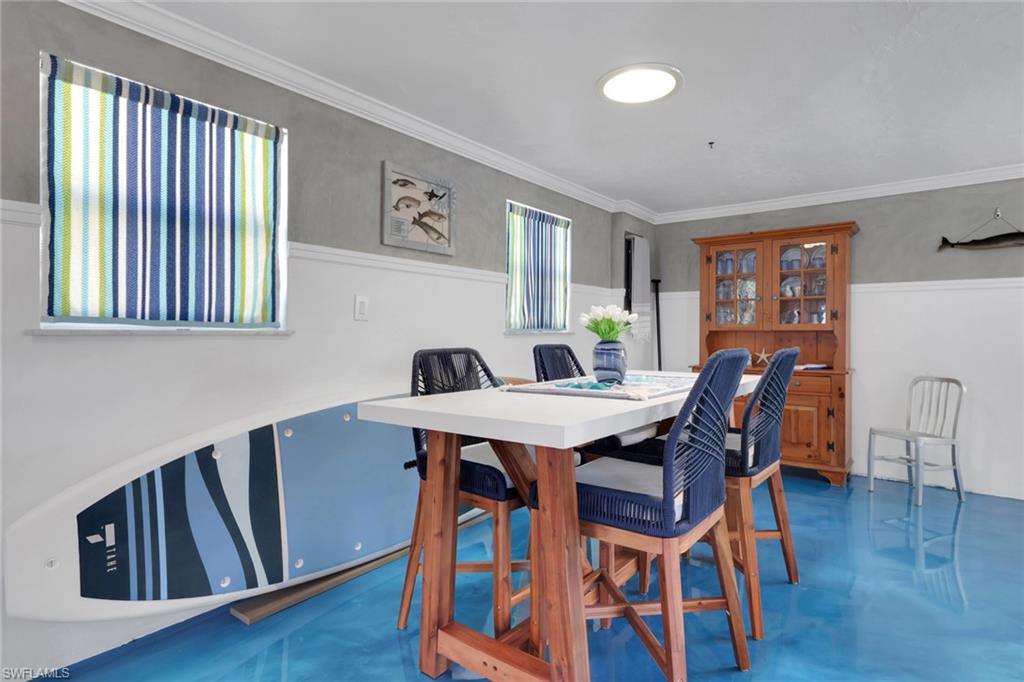 The Blue Cottage is a coastal mid-century showpiece set along Gulf Harboru2019s widest canal, where nearly continuous seawall construction helps preserve depth and water clarity while offering direct, minutes-to-the-Gulf access via the Cocohatchee River. From the moment you enter through a private coco plum arbor, the home unfolds into a meticulously designed waterfront compound complete with a 10-ton sandy beach, extensive paver hardscape, and a dramatic 12u2019 x 18u2019 copper trimmed covered wood arbor with ceiling fans, lighting, retractable wall elements, and slatted shutters that can open seamlessly to the outdoors. A full dock with water and electric service, 10,000-pound boat lift, fish cleaning station, storage boxes, and walkway access around the vessel make this an ideal property for serious boaters. A hand-painted fish mural by renowned Florida artist Jared Stinchcomb u2014 known for his work at the Marco Island Historical Museum u2014 creates a one-of-a-kind artistic focal point. Located beside the historic stone coral bait house from Gulf Harboru2019s early days as a natural fishing estuary, the setting is rich in authentic Old Florida charm.The interior continues the refined coastal narrative with hand-glazed concrete walls and a remarkable 10-layer continuous poured epoxy floor in sapphire tones, evoking the layered hues of the ocean. The flexible layout includes two bedrooms plus a sun room that could function as a third sleeping area, a spacious primary suite with separate sitting area and dual closets, and a marble tile bath with hand-laid detailing. The kitchen features a restaurant-style stainless steel sink and console, custom concrete dining table, and solid wood cypress cabinetry, all conveying durability and design. Art glass doors and custom carved elements further elevate the aesthetic. Offered fully turnkey with furnishings included, this residence is primed for immediate enjoyment or income production in one of Naplesu2019 few waterfront communities without restrictive rental limitations.