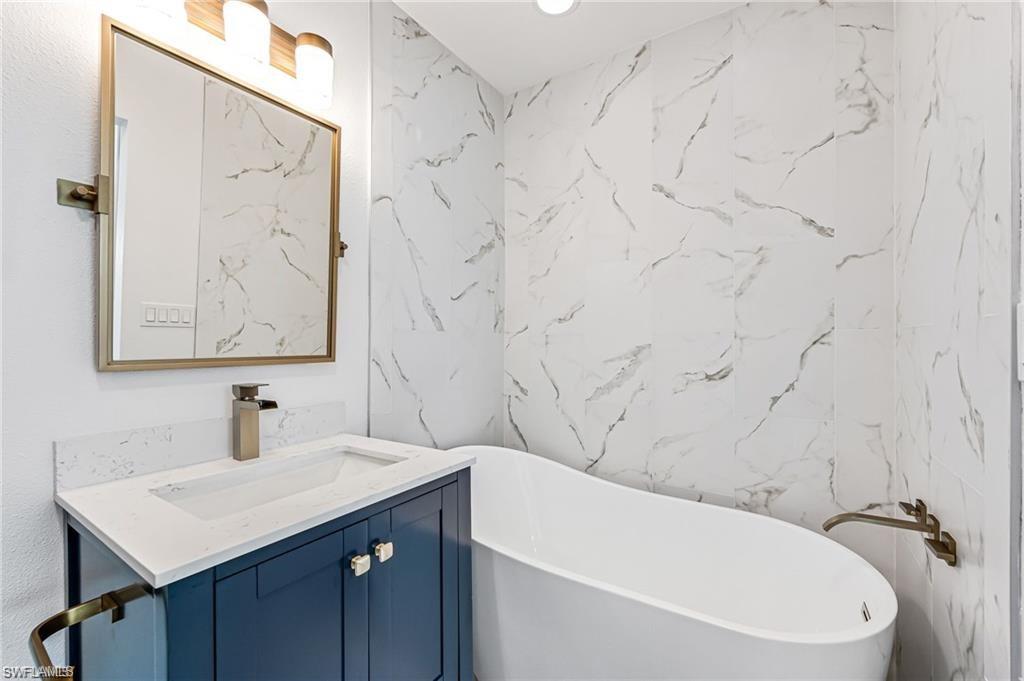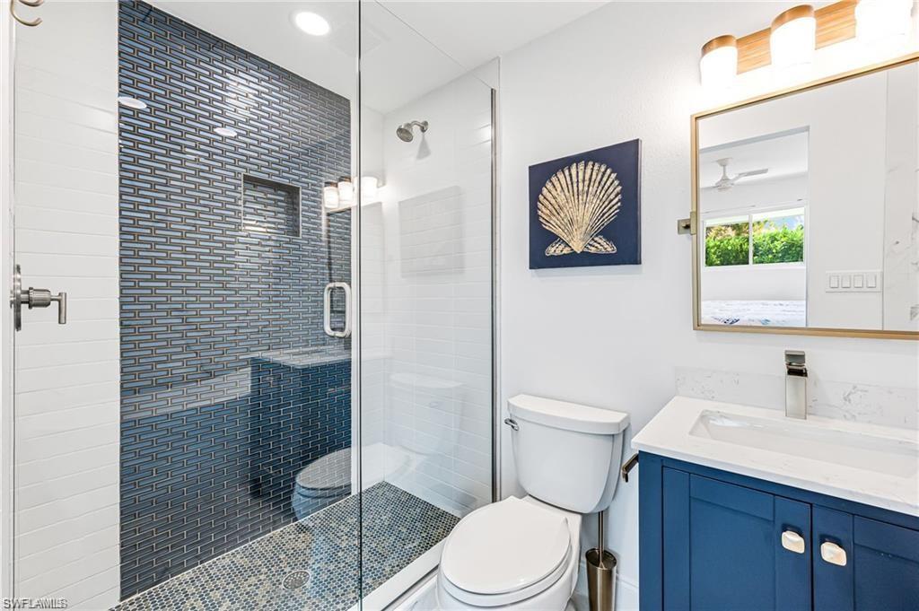 This beautifully updated Collier County waterfront home is the perfect blend of luxury, location, and lifestyle! Boatersu2019 dream! Enjoy direct Gulf access with no bridges and a community boat ramp just a few streets away. Plus, NO HOA restrictions! Located in the sought-after Bonita Shores boating community, this home is just minutes from Barefoot Beach, shopping, restaurants, grocery stores, fitness centers, and some of the best white sandy beaches. Whether you prefer to walk, bike, or boat, paradise is always within reach. Inside, this stunning home features a completely repainted interior and exterior in the past few weeks, adding a fresh, modern feel. The designer-renovated interior boasts wood flooring in the main living areas and master bedroom, with tile plank flooring in the guest bedrooms and office. The chefu2019s kitchen is a showstopper with custom cabinetry, quartzite countertops and backsplash, stainless steel appliances, and a large island with bar seating. Step outside to your private newly built pool with sun shelf and built-in water features, all perfectly complemented by a cypress-lined covered lanai that connects the pool area to the waterfront. The home is also storm-ready with a new roof, impact windows, and doors. The spacious master suite offers a custom-designed bath with a large walk-in shower, double vanity, and a custom walk-in closets. The guest suites each feature private entrances, making this home a fantastic rental income opportunity. Each guest suite includes king-size beds and beautifully appointed en-suite bathrooms with custom tile showers, seamless glass doors, and designer vanities. Offered fully furnished and turnkey! All furniture and furnishings are included just bring your boat and start making memories or profits!