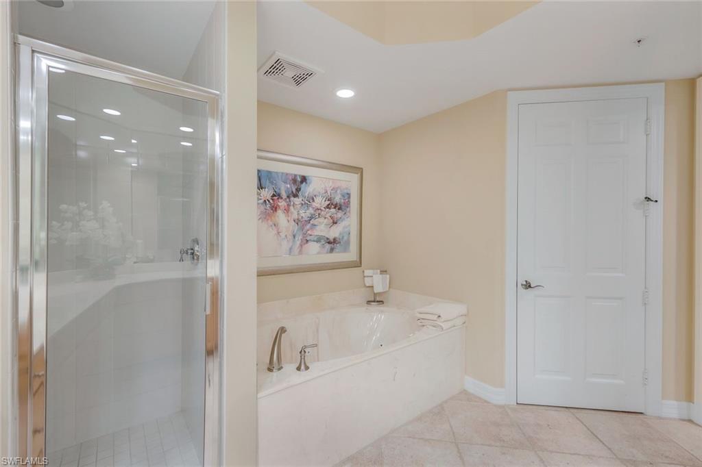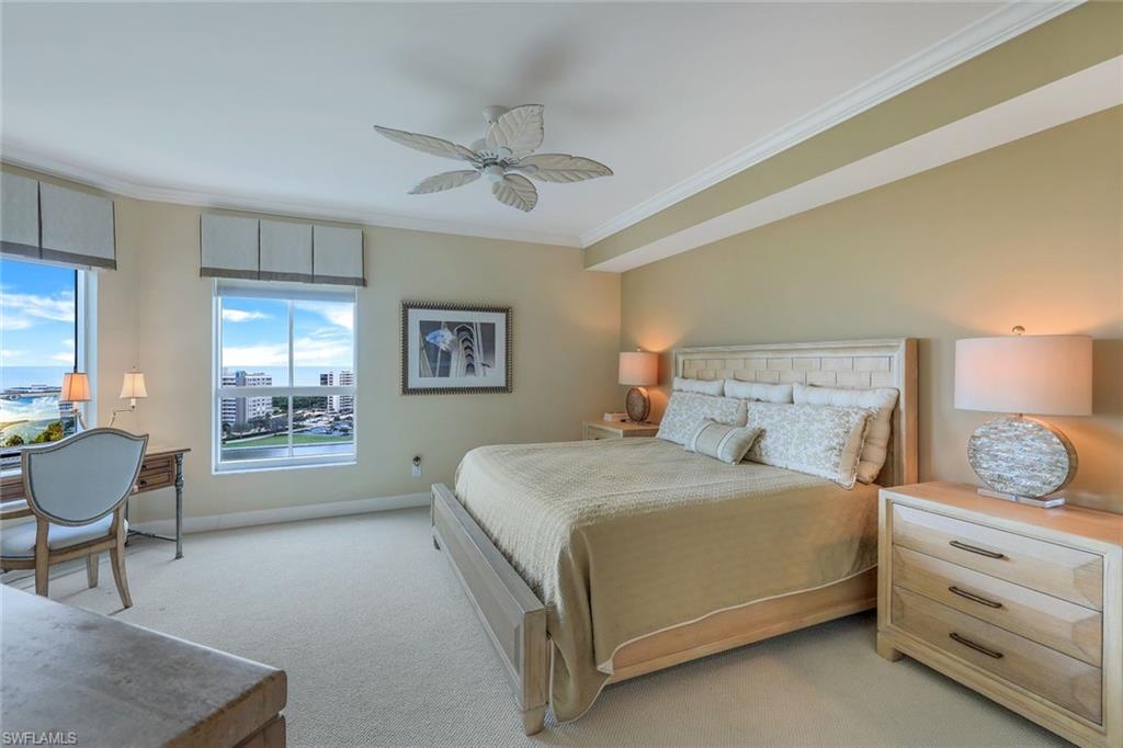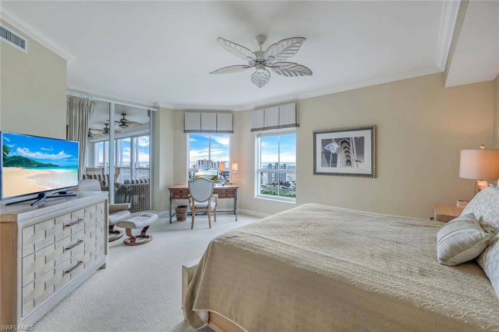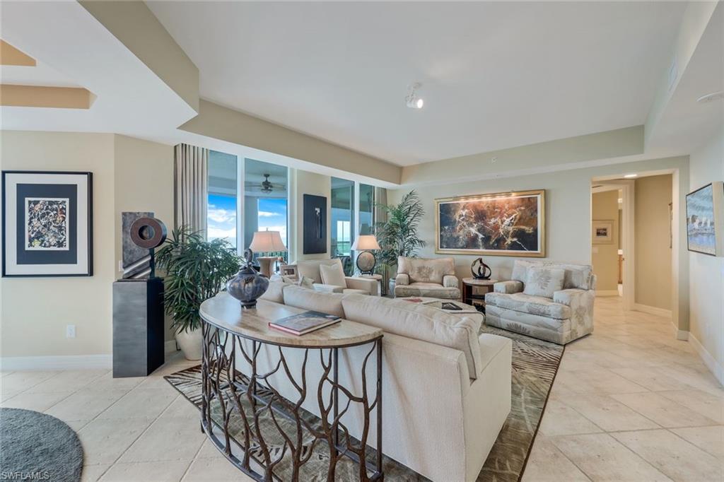 Experience luxury living at its finest in this exquisite 3-bedroom, 3.5-bathroom residence located on the 12th floor of The Dunes of Naples. With over 2,600 square feet of meticulously designed living space, this stunning condo offers unparalleled panoramic views of the Gulf of Mexico, serene nature preserves, and the surrounding coastline. Step inside to discover an open-concept layout that seamlessly integrates the living, dining, and kitchen areas, perfect for both entertaining and relaxation. The spacious living room flows effortlessly to the expansive screened-in lanai, where you can enjoy captivating sunset views year-round. The master suite is a true sanctuary, complete with breathtaking Gulf views, two walk-in closets, and a luxurious en-suite bath with dual vanities, a soaking tub, and a separate glass-enclosed shower. Both guest bedrooms are generously sized, each with its own private bath, ensuring comfort and privacy for family or visitors. As a resident of The Dunes, you will enjoy access to resort-style amenities, including a heated pool and spa, fitness center, tennis courts, and on-site dining options. Additionally, you have the exclusive opportunity to join The Floridian Club, which offers a private beach club experience, a restaurant, pool, beachside service, and a shuttle service that takes you directly from The Dunes to the club. Located in North Naples, The Dunes is just minutes from pristine beaches, world-class shopping and dining at Mercato, and abundant recreational opportunities.