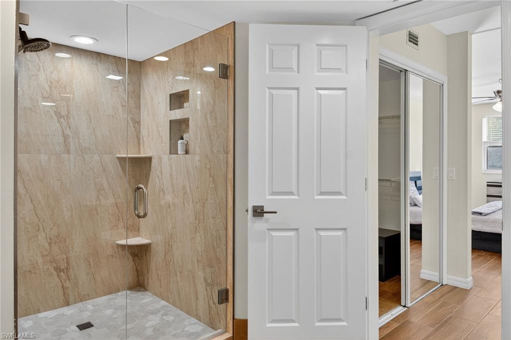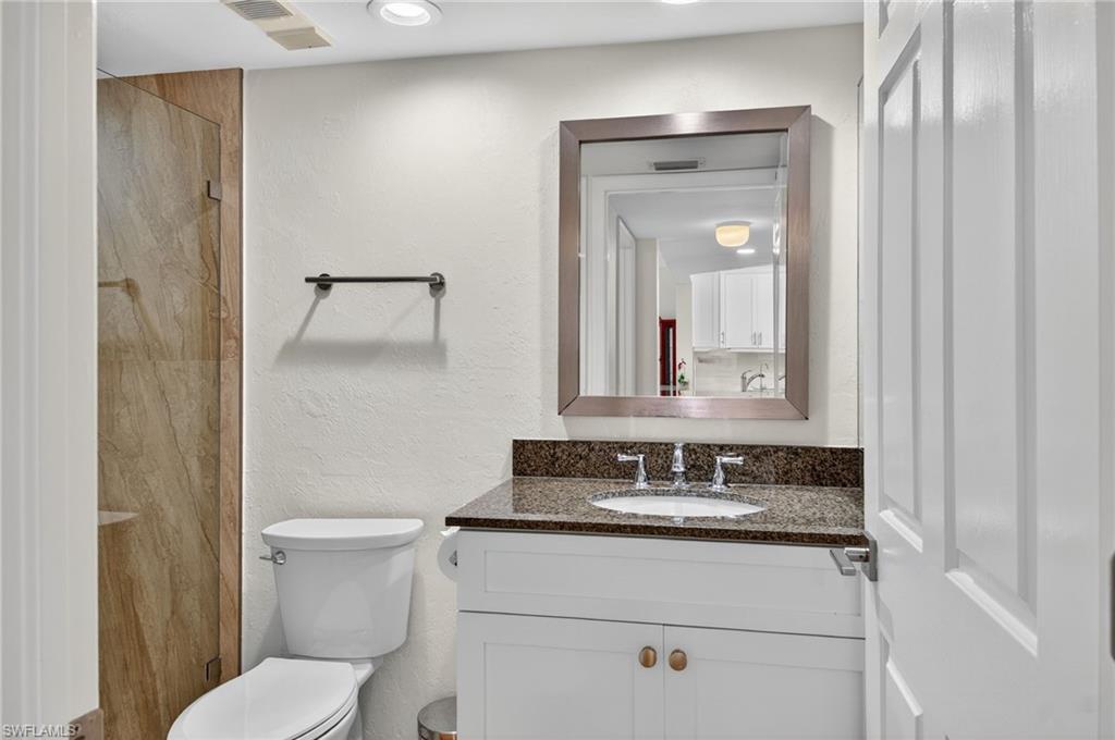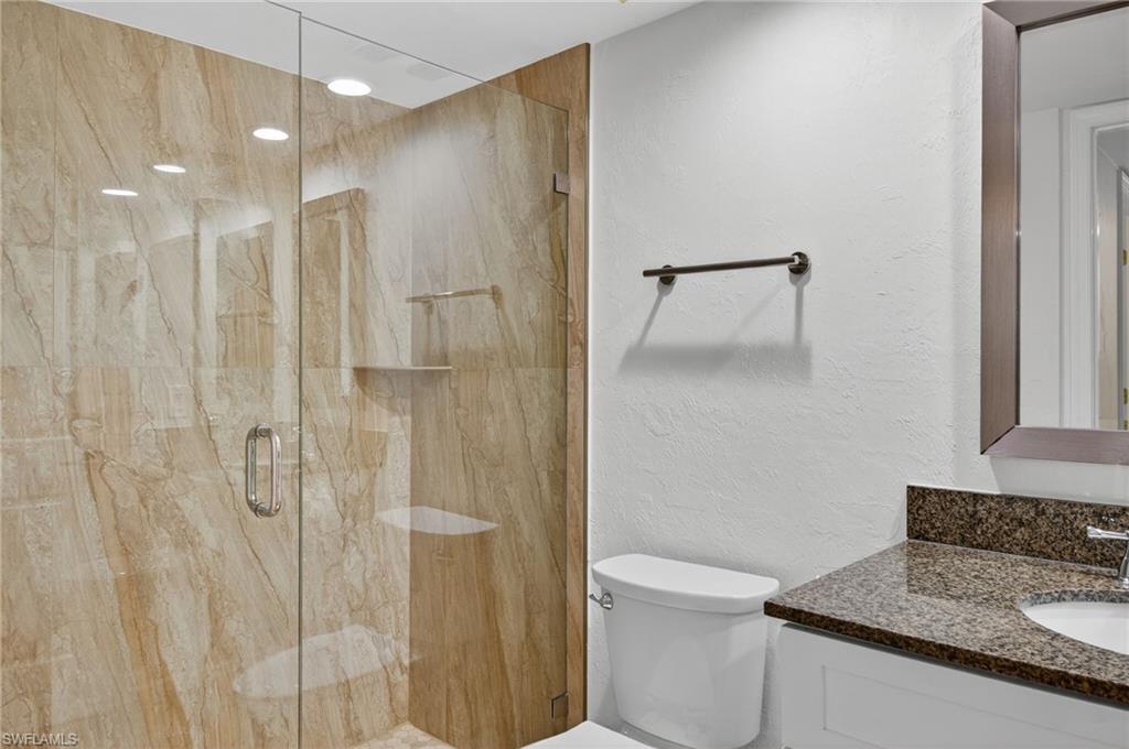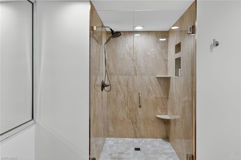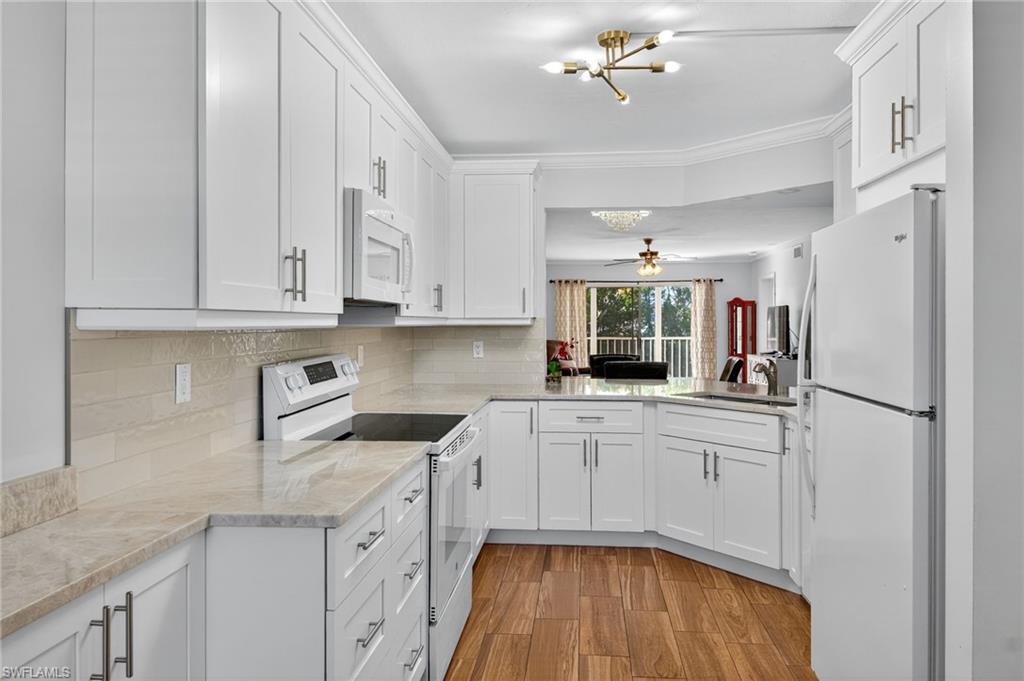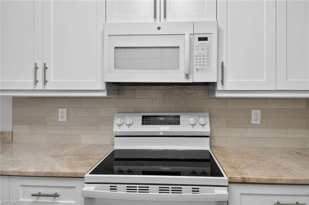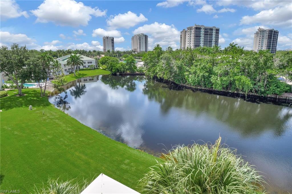 LOCATION, LOCATION! Waterviews off the living room, lanai & master bedroom. This Condo has been recently renovated. Quality! Cabinet packed white Shaker cabinetry, extended into eating area for loads of extra storage. Quartz countertops, with added breakfast bar space, modern subway backsplash tiling, white appliances, & new lighting. Both bathrooms are walk-in glass showers, with new vanities. Main living area and kitchen feature crown molding. Flooring throughout is wood-grain color tile. Washer/dryer replaced recently. Windows replaced 2018, hurricane shutters and new impact front door add great value. Sold with furniture, so available to make this your place now. This building is very unique, the only one with a rooftop deck. Enjoy coffee, happy hour or just relax reading & sunning yourself on Penthouse level with great views. Princeton Place community has a pool & bathhouse, each building has its own grilling area. Parking spot for this condo is 204 its a End. If your looking to lease/purchase a boat slip or have more social activities, look into joining The Tarpon Cove Beach & Racquet Club just steps away. Ask about details & costs of memberships. Fitness; dining; tennis; bocce; pool ; tiki bar and a boat taxi to Delnor Wiggins Beach.