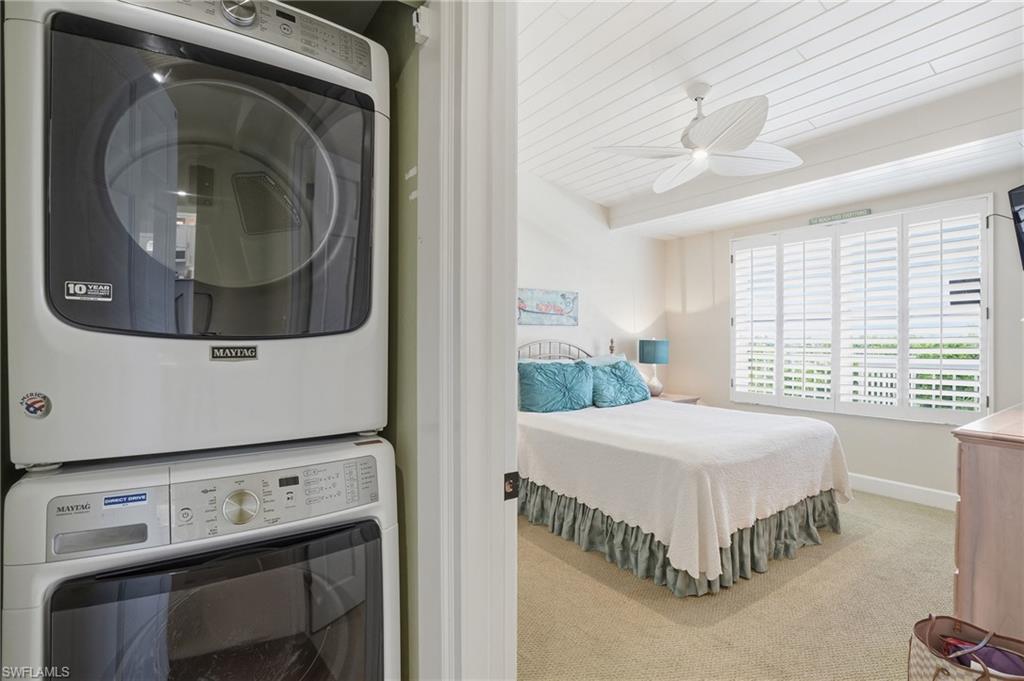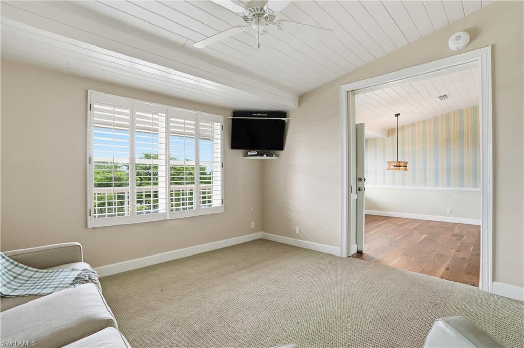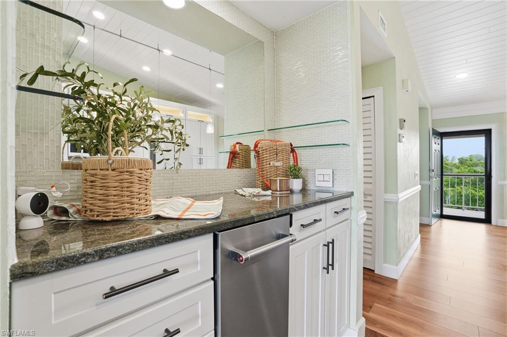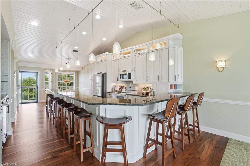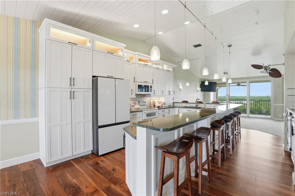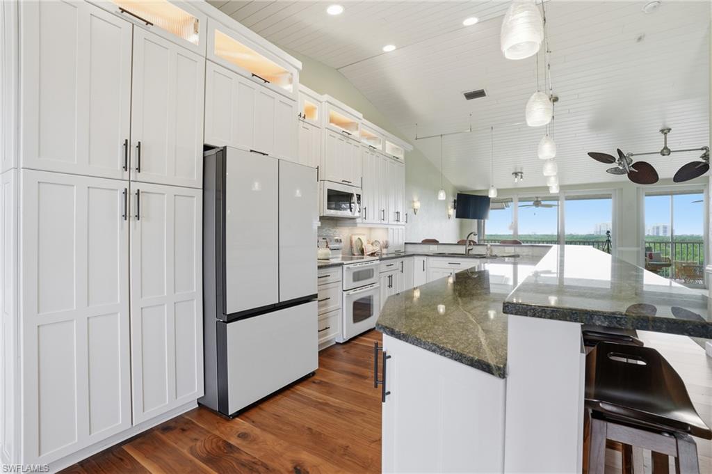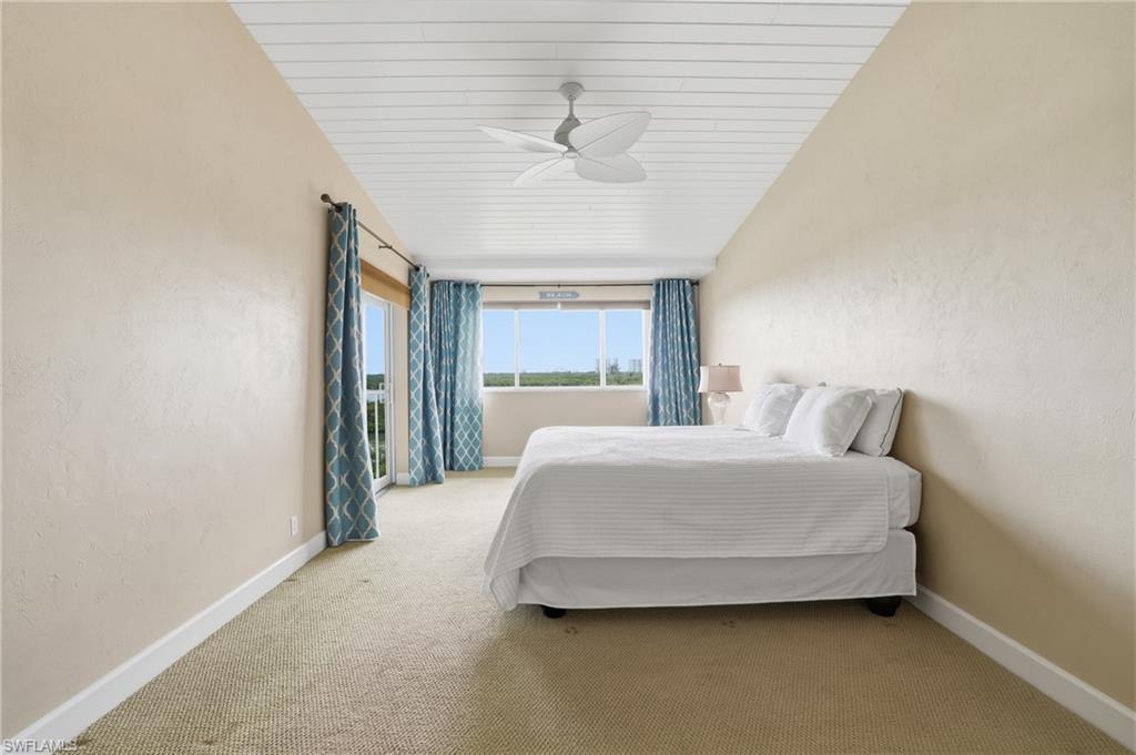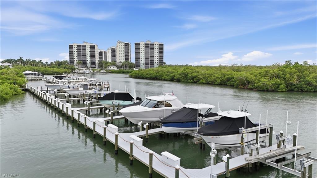 Welcome to one of North Naplesu2019 most seldom offered penthouse opportunitiesu2014an elevated waterfront back bay, gulf access residence reimagined with exceptional craftsmanship and coastal sophistication. This top-floor unit offers vaulted ceilings, finished with stunning white tongue-and-groove wood that draws the eye upward and highlights the scale of the space. The owner thoughtfully reconfigured nearly every nonu2013load-bearing wall and fully opened the kitchen to create an expansive layout with modern flow. A major architectural upgrade replaced the smaller original 8-foot slider with a second 12-foot slider, inviting significantly more natural light while maximizing sightlines of the back bay and mangroves. Additional enhancements include fully remodeled bathrooms with walk-in showers (the primary featuring dual showerheads), solid-core interior doors throughout, and high-end white kitchen cabinetry contrasted with gorgeous walnut flooring, brand-new lanai screens and stunning herringbone porcelain tile that resembles natural wood.These large penthouse units seldom come available, this particular unit has only had two owners in its 33-year history while two neighboring penthouses still belong to their original owners. Princeton Place Building One offers the most unobstructed vantage point of all five buildings in the complex with easy access to the docks, providing exceptional ambience and further enhancing the coveted waterfront lifestyle. Boat docks are available for sale or lease just steps from your back door.Residents may also enjoy optional membership to the highly regarded Tarpon Cove Beach & Racquet Club, featuring Har-Tru tennis courts, sophisticated dining, a resort-style pool, fitness offerings, and a private boat shuttle to Delnor-Wiggins Pass State Park Beach.