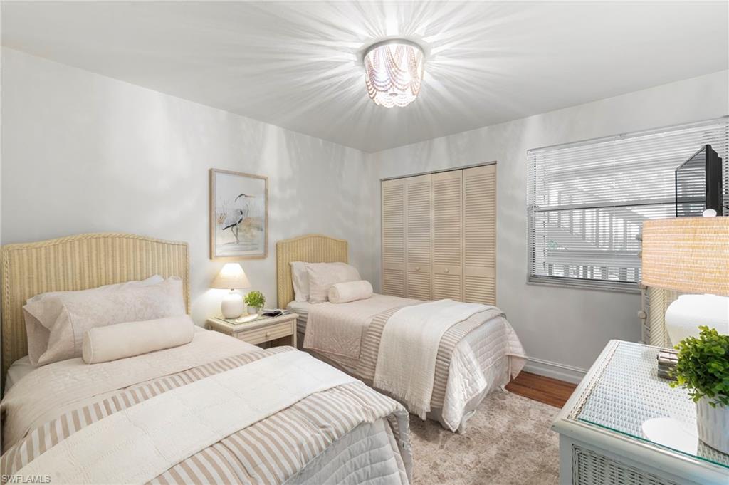 RECENTLY REDUCED u2013 PRICED TO SELL! Rare opportunity west of US-41 in the highly desirable Wiggins Bay community. This light-filled, turnkey furnished 2-bedroom, 2-bath condo offers effortless coastal living just minutes from North Naplesu2019 most beautiful Gulf beaches. Enjoy your private screened lanaiu2014perfect for morning coffee or unwinding in the evenings while taking in the peaceful, tropical surroundings.The residence features an inviting open-concept layout, tasteful furnishings, and a newer A/C system (2022), providing comfort and peace of mind for years to come. This home has never experienced flooding damage from either Hurricane Irma or Ian. Being offered turnkey, this condo is ideal for seasonal residents, full-time living, or investors looking for a move-in-ready property with immediate rental potential. A generous rental policy allows for 30-day rentals up to 12 times per year, offering excellent flexibility and income potential.Wiggins Bay residents enjoy a gated setting with lush landscaping and access to community amenities, including a pool and tennis courts. The condo fee covers cable, internet, water, exterior insurance, building maintenance, and landscapingu2014ensuring easy, low-maintenance ownership.Ideally located just minutes from the white sandy shores of Delnor-Wiggins Pass State Park and Bonita Beach, youu2019ll have quick access to top dining, shopping, boating, and all that makes North Naples one of Southwest Floridau2019s most sought-after destinations.Optional membership at Tarpon Cove Yacht & Racquet Club enhances the lifestyle even further, offering a private beach shuttle, waterfront dining, tennis, and a vibrant social scene.With its prime location west of US-41, turnkey convenience, updated A/C, and a clean flood-free history, this property stands out as one of the best values in North Naples.