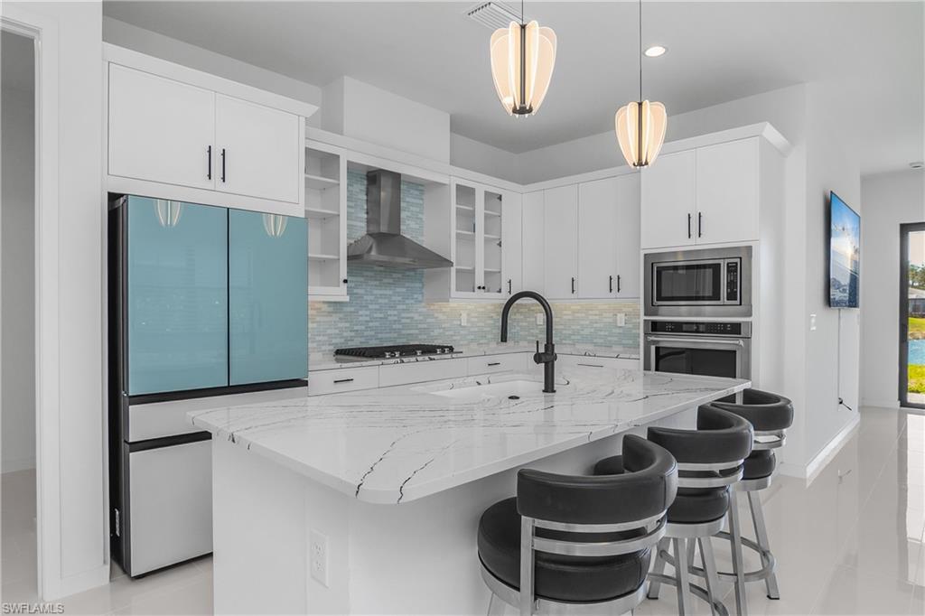 This beautifully maintained residence offers an open-concept floor plan with abundant natural light and designer finishes. The kitchen features upgraded cabinetry, quartz countertops, stainless steel appliances, large pantry and an oversized island perfect for entertaining.The spacious primary suite includes a walk-in closet and a spa-inspired bath. Additional two bedrooms provide flexibility for guests or a home office. Step outside to a private lanai with a lake-view. Enjoy the convenience of a dedicated laundry room, impact windows and doors and attached two-car garage with ample storage.Located in a gated community with low HOA fees, Abaco Pointe offers a clubhouse, fitness center and pool. Minutes to Mercato, Vanderbilt Beach, top-rated schools, and dining, this home combines luxury and convenience.