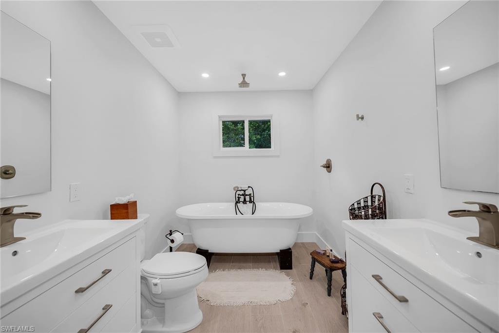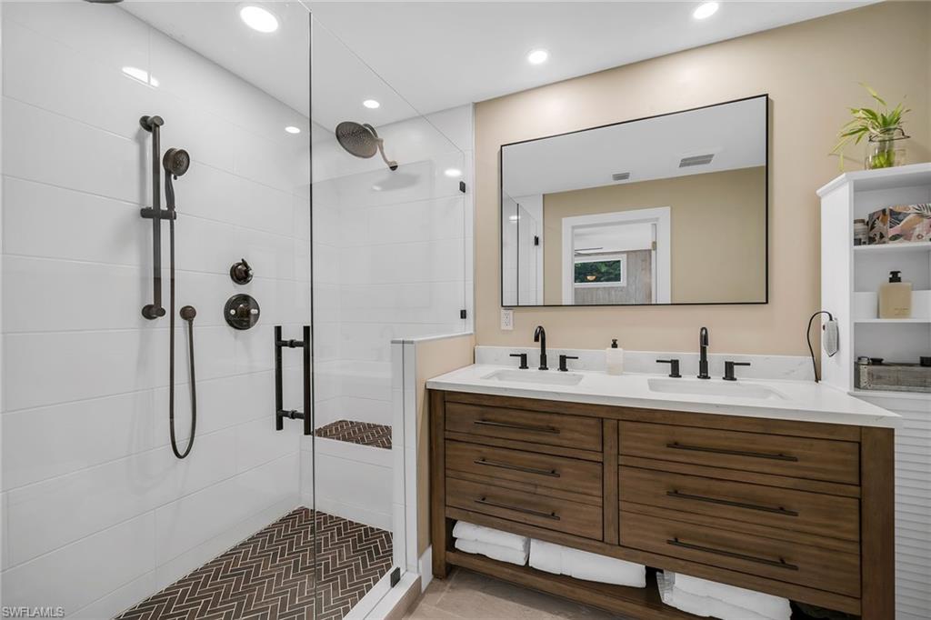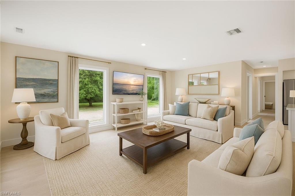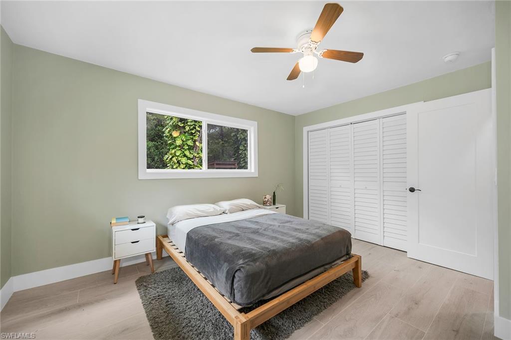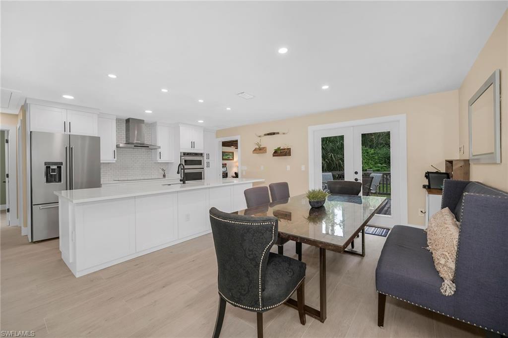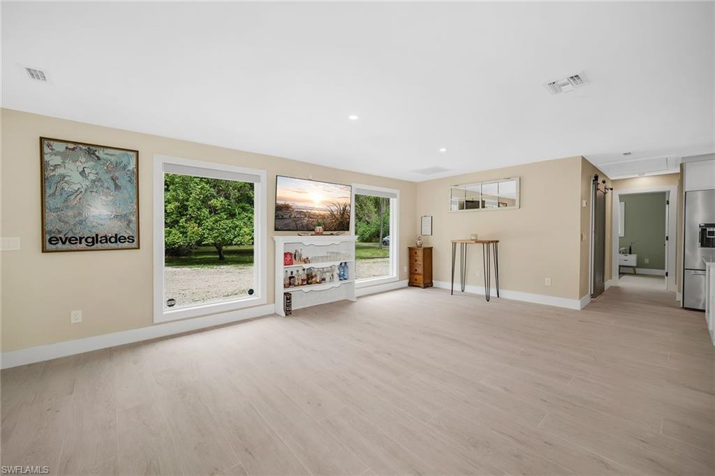 Check out this home in paradise! You wonu2019t want to miss the opportunity to own this beautifully remodeled and updated residence, tucked away on 1.25 acres of private, lushly landscaped grounds in Golden Gate Estates. Positioned just two miles from Immokalee Road and Collier Boulevard, this property offers privacy and convenience, with Publix, CVS, Walgreens, NCH hospital, restaurants and shopping just minutes away. Designed for those who love nature and outdoor living, the home features an expansive new deck, outdoor patio with fire pit, covered barbecue area and fruit trees, creating a serene retreat where every room enjoys garden views. This spacious three-bedroom plus den, three-bath home offers approximately 1,800 square feet under air with a flowing open concept floor plan, abundant natural light, and large windows framing peaceful greenery. Completely renovated with new wood-look tile flooring and a new waterproof subfloor, upgraded baseboards, and a new reverse osmosis system, the home blends modern updates with a relaxed, farmhouse-inspired charm. The den, set up as a family room, boasts a wood-plank ceiling, walls of windows, and direct access to the deck and backyard, and is conveniently served by a full bath with a walk-in shower, making it a flexible living space or private guest retreat. The upgraded kitchen is a showstopper, featuring crisp white cabinetry, quartz countertops, a tile backsplash, recessed lighting, pantry, island with bar seating, and new KitchenAid stainless steel appliances including electric cooktop, built-in wall oven, microwave, dishwasher, and refrigerator with icemaker. French doors in the adjacent dining area open seamlessly to the deck for easy indoor-outdoor entertaining. The owneru2019s suite provides a private sanctuary with direct deck access, a walk-in closet with built-ins and bonus storage room, and a spa-like en-suite bath with dual quartz vanities, a walk-in shower with bench, multiple shower heads and frameless glass. Two guest bedrooms share a beautifully updated bath with dual sinks and a tub-shower combo. A dedicated laundry room adds convenience with newer Maytag washer and dryer, a utility sink and overhead cabinets for extra storage. Exterior features include a new metal roof, a covered concrete front porch with ceiling fan overlooking the gardens, a covered outdoor sitting area, pole barn-style shed plus extra storage shed, and ample space to add a pool. Horses are welcome, and the property provides plenty of room to spread out and enjoy the natural surroundings. This property has been thoughtfully updated with countless improvements inside and out, offering the ideal blend of modern comfort and natural beauty, a retreat surrounded by nature yet close to everything Naples has to offer.