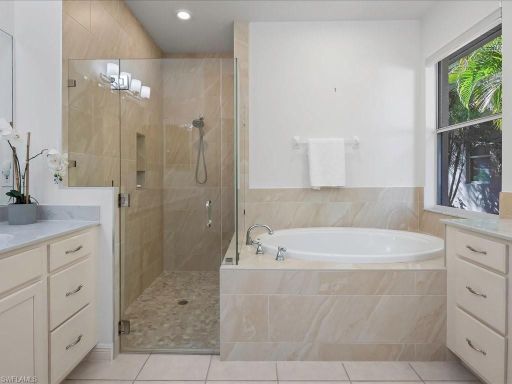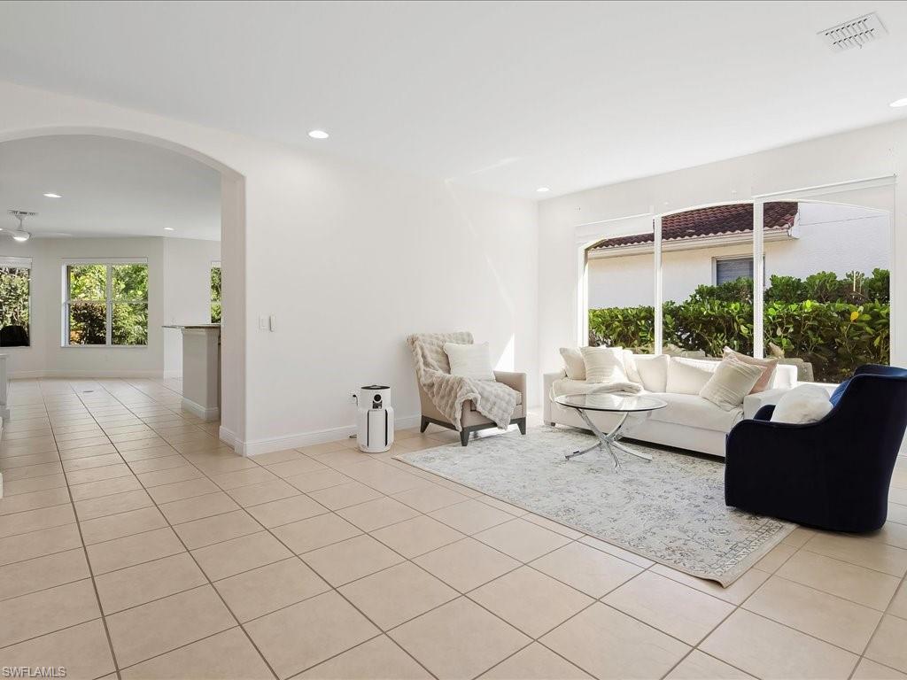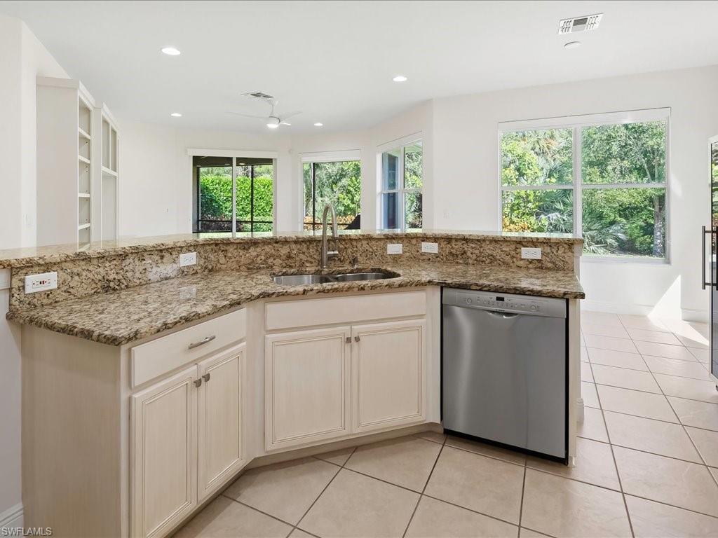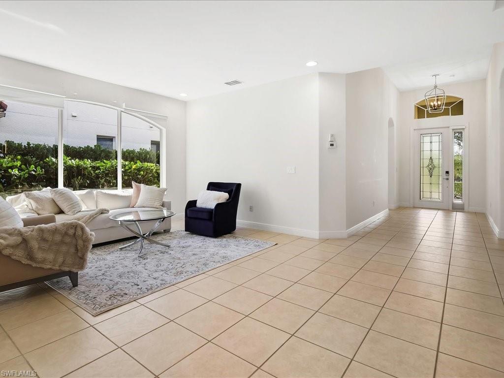Best deal in North Naples! New roof is being installed. A rare opportunity to own this stunning contemporary 3bedrooms, 2 bathrooms house in coveted North Naples! Prime location, only 10 minutes from 5th Ave, Mercato, beaches, NOT IN A FLOOD ZONE. 2025 NEW TILE ROOF, 2025 WATER HEATER, 2025 GE MICROWAVE, 2023 BOSCH DISHWASHER, 2023 WASHER, 2020 GE DRYER, 2019 LENNOX AIR HANDLER. 2020 LUXURY VINYL FLOORS IN ALL BEDROOMS. No carpeting. This luxury home is huge, much larger than it looks from the street, updated and in a perfect move-in condition. Sunny living room features dramatic wall of windows, 9.4u2019 ceilings, great open space living and dining rooms, delightful chefu2019s kitchen and a large lanai that opens to great size yard, perfect for adding a pool. Exquisite white kitchen has modern cabinetry, granite countertops, walk-in pantry. Kitchen and breakfast areas open to oversized lanai, fabulous for grilling and outdoor entertaining. Luxurious master suite with 10u2019 coffered ceilings has 2 generous walk-in closets, 3rd regular closet and elegant spa like bath with separate tub and shower. Oversized attached 2 car garage has added storage shelving system. Well run financially solid association has the community pool, spa, clubhouse with gym and party room, boardwalk, steps from this house. Coveted gated neighborhood of Aviano provides a luxury secure maintenance free lifestyle in a lush tropical setting with Royal Palm trees, 10 min driving to sandy Gulfshore beaches and 5th Ave, A+ rated North Naples schools, great shopping and dining. Pet friendly community with no weight limits for dogs! Not in a flood zone. Take a 3-D Tour, CLICK on the 3D BUTTON and walk around.