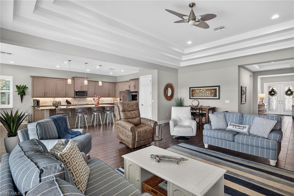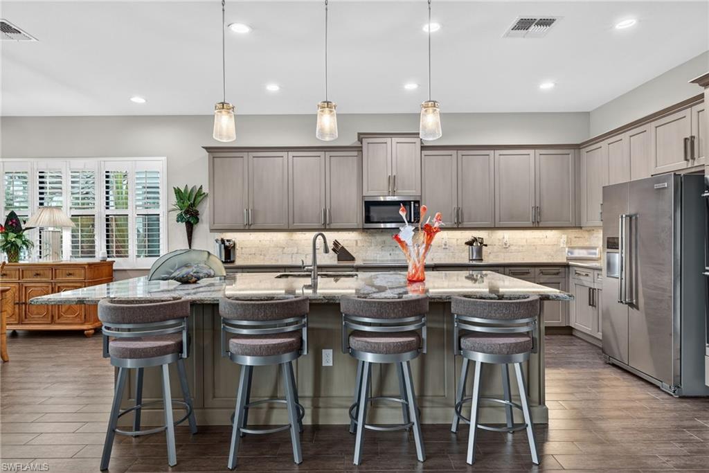 Luxury, Location and Lifestyle! You will be captivated upon entering this fully furnished, executive collection, Heron ll model, by Standard Pacific homes. This breathtaking open floor plan consisting of four bedrooms and 3 1/2 baths will meet your every need. Shy of 3100 ft.u00b2 of living area, situated on a large lake lot with a sought after western exposure. This Home has it all, with guaranteed magnificent sunsets! Your spacious resort style, coastal designed ranch home is an entertainers dream. A huge island anchors your living/dining area with upgraded granite Countertops, block backsplash, wall ovens, stainless steel appliances, and a walk-in pantry.A spacious King Suite awaits you, featuring his and her walk-in custom closets, dual vanities and luxury shower. Leading from the Great room area with impact windows and doors as well as impact glass pocket sliders is a fantastic outdoor living area complete with a 12 x 28u2018 pool Overlooking a spacious lake and magnificent community center. Your home possesses plantation shutters throughout as well as a bonus three car garage featuring loads of extra storage. An additional remote hurricane shutter on your lanai will keep your patio furniture dry and safe from storms. Whether you are seeking a retirement home, second home or an instant high-end rental, this A+/top-tier school district for your family fits everyoneu2019s needs. Bent Creeku2019s amazing amenity center includes a Lakeside clubhouse featuring an event center, complete with billiard rooms and a full catering kitchen. Enjoy a state-of -the- art fitness center, equipped with locker rooms, steam rooms and showers. Savor your enormous resort style pool, complemented by a relaxing spa and outdoor fire pit. Your sports facility includes har Tru tennis courts, Pickleball courts, bocce courts and a half court basketball area, catering to all sports enthusiasts. Low HOAu2018s and no CDD , plus direct gated access to founders Square for shopping, dining, and entertainment in desirable North Naples. Collier County offers you complementary beach stickers to multiple local beaches. Donu2019t wait, this fully furnished beauty wonu2019t last!