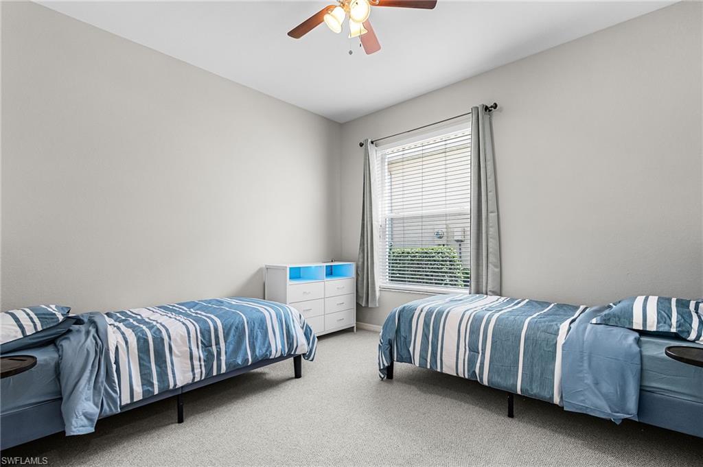 Lakefront Pool & Spa Retreat in the Heart of Naples u2014 Perfect for Seasonal Living. Escape the cold and enjoy the best of Southwest Florida from this 3-bedroom + loft, 3-bath lakefront pool home in a desirable gated community. Ideally located close to everything Naples has to offer, this home is perfect for winter snowbirds and seasonal renters looking for comfort, convenience, and sunshine. Start your mornings with coffee on the screened lanai overlooking the tranquil lake, and spend your afternoons relaxing in the heated pool and spa u2014 your own private outdoor oasis. Inside, the home feels bright and welcoming with soaring ceilings, abundant natural light, fresh interior paint, and brand-new carpet throughout. The open layout makes it easy to entertain or simply unwind after a day at the beach.The kitchen features new quartz countertops, a breakfast bar, and a cozy eat-in area, flowing seamlessly into the main living and dining spaces that open directly to the pool deck. The spacious primary suite offers a true retreat with a soaking tub, walk-in closet, and private lanai access. Two additional generously sized bedrooms each have convenient access to full bathrooms, providing comfort and privacy for guests. Upstairs, the versatile loft adds extra flexibility u2014 ideal as a guest lounge, media room, or quiet workspace for extended seasonal stays. Located just 10 minutes to Naplesu2019 famous white-sand Gulf beaches and minutes to golf, shopping, entertainment, and everyday conveniences An attached two-car garage provides additional storage and convenience for longer stays. Located in a beautifully landscaped gated community, this home offers the perfect combination of privacy, relaxation, and easy access to everything Naples is known for.