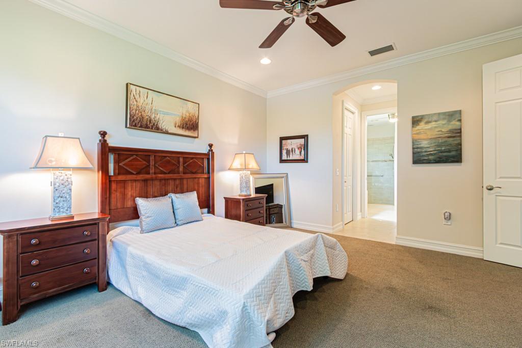 LAKE FRONT, LONG WATER VIEWS, ONE OF THE LARGEST LOTS IN THE COMMUNITY, LOW HOA FEES AND TURNKEY FURNISHED! This home offers 3BR + den, 3 BA, is situated on the corner with lush landscaping, and has a great floor plan that flows easily, with great options for entertaining. The Primary Suite is located on the main floor and has relaxing views of the lanai and lake. Upstairs there is a wonderful lounging area, two generous sized guest rooms and a guest bathroom. A perfect retreat for visitors! The home is being offered furnished with furnishings, kitchen items, etc. The garage has great `tiles` on the floor for easy care, a tankless water heater and storage shelving `above the car`, and a water softener. Bucks Run is conveniently located close to local shops, restaurants, entertainment options, I-75 access, local hospitals and more. A great gated community of only 60 single-family residences with low HOA fees, and a fabulous community where homes are rarely available for sale.