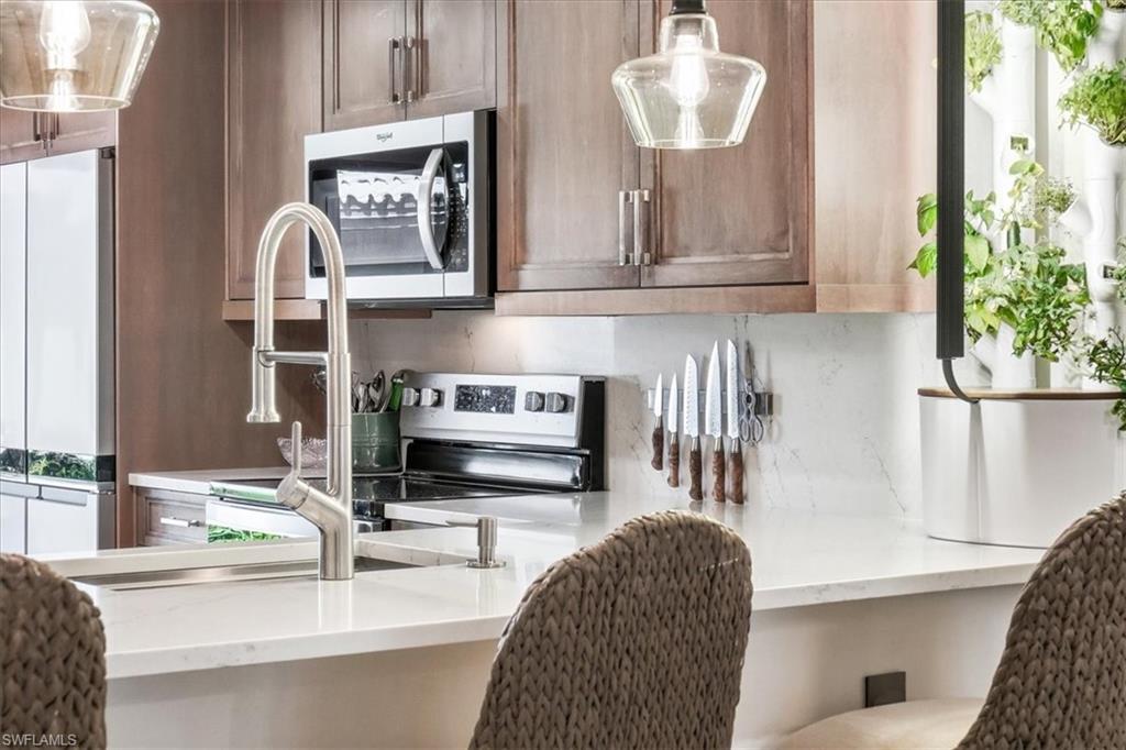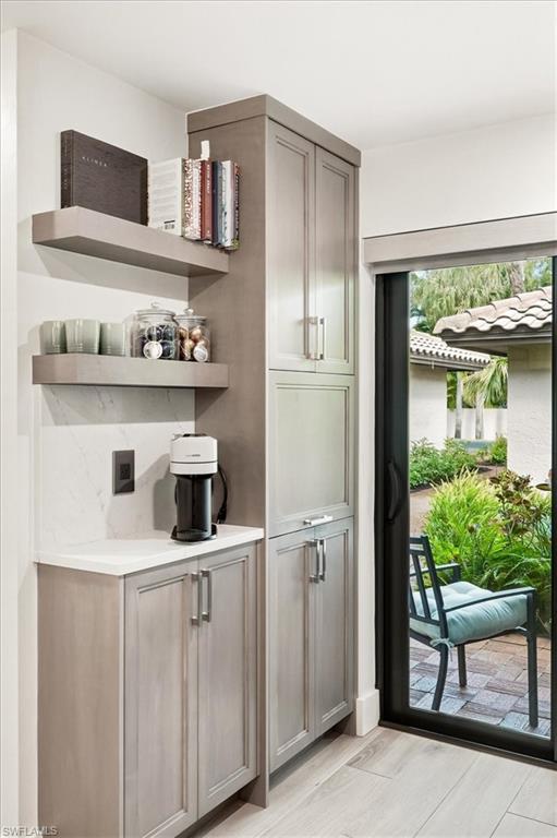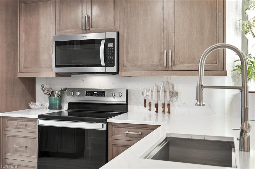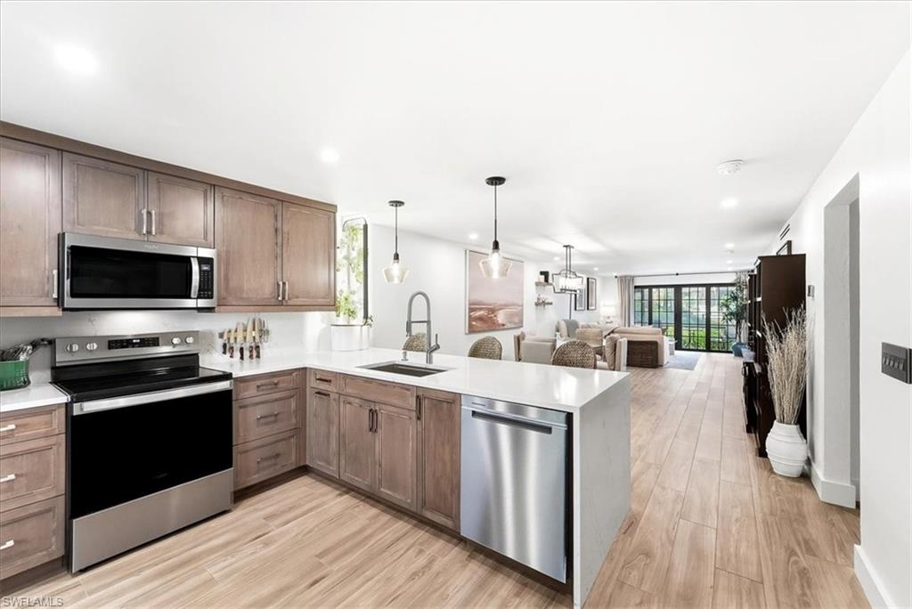 Welcome to 3219 Horse Carriage Way #303, a charming, light-filled residence nestled within the intimate Coach House community in Naples. This completely renovated 2-bedroom, 2-bath updated condo offers an abundance of natural light and a thoughtfully designed layout. All impact-rated doors and windows installed throughout. The kitchen showcases quartz countertops with a dramatic waterfall edge, classic shaker cabinetry, stainless steel appliances, perfectly blending style and functionality. Retreat to the serene primary suite, featuring sliding glass doors that open to your private screened lanai. The en-suite bath includes dual sinks and a generously sized walk-in shower for added comfort. The expansive screened lanai is ideal for morning coffee or unwinding in the evening breeze. A detached one-car garage with built-in cabinetry provides additional storage and convenience. Residents of Coach House enjoy beautifully maintained tropical landscaping, brick-paver driveways and courtyards, a sparkling community pool, and lush green space perfect for relaxing walks or gathering with neighbors. Condo fees include water, cable, internet, and Wi-Fiu2014creating truly effortless Southwest Florida living. A hidden gem in the heart of Naplesu2014private, peaceful, and perfectly positioned.