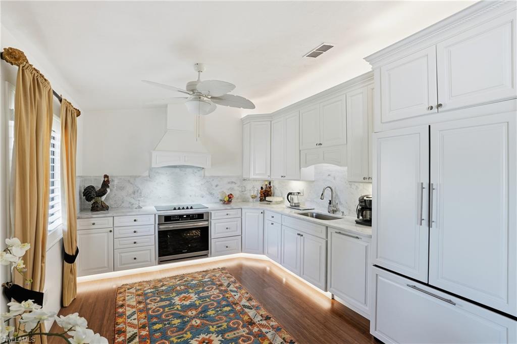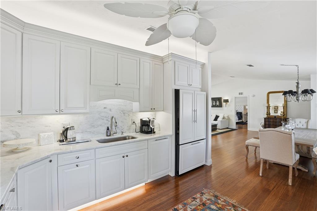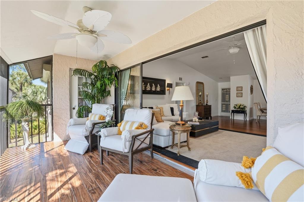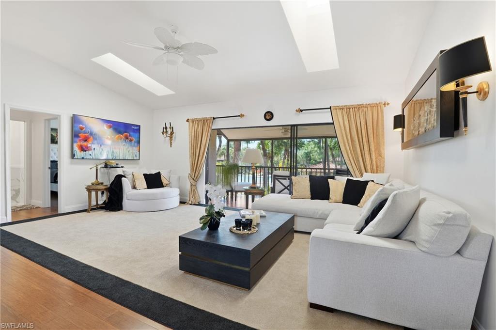 Ideally positioned in the heart of Naples, this inviting second-floor residence within the private Coach House community offers a rare blend of comfort, light, and thoughtful updates just minutes from the Gulfu2019s white-sand beaches. One of only two units reimagined to feature an open-concept layout, the home lives larger than its footprint with over 1,500 square feet of airy, connected living space.Warm bamboo flooring runs throughout, while skylights above the main living area fill the home with natural light. The kitchen has been fully remodeled with marble countertops, a refined mix of stainless steel and panel-ready appliances, and clean, modern finishes that elevate both form and function.The spacious primary suite provides a quiet retreat, complete with an oversized walk-in closet and direct access to the enclosed lanai. The updated bath features dual vanities and a walk-in shower for everyday ease.Overlooking the community pool, the tiled lanai enjoys desirable western exposure, offering the perfect setting for morning coffee or colorful Naples sunsets. An oversized detached single-car garage adds valuable storage and convenience.Residents enjoy a serene, well-maintained setting anchored by a resort-style pool that offers both relaxation and an active, friendly social scene for residents who wish to participate, all within easy reach of shopping, dining, and entertainment throughout Naples, including Fifth Avenue South and Third Street South.Comfortable, updated, and centrally located, this is effortless Naples living at its best.